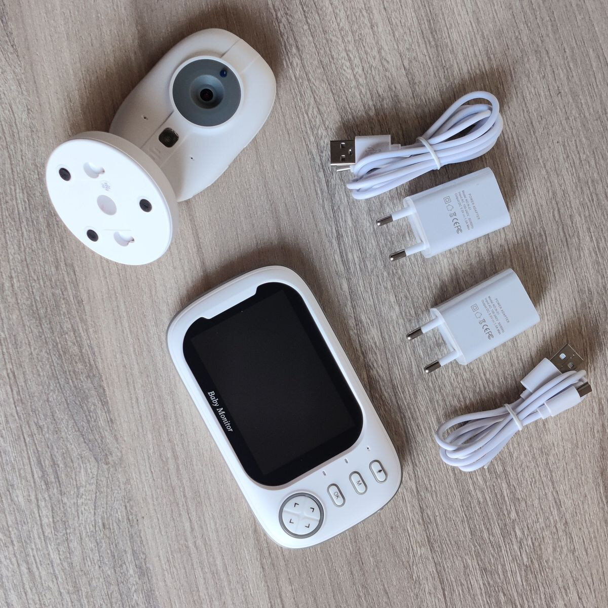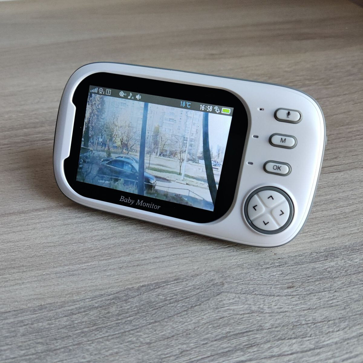 Пристрій складається з 2-х блоків - камери та монітора спостереження. Камера має невидиме нічне підсвічування та датчик температури. Завдяки вбудованому мікрофону та динаміку забезпечується двосторонній зв'язок - Ви зможете не тільки чути дитину, а й говорити з нею. Вбудований термометр виміряє температуру в приміщенні, де знаходиться малюк. Температура відображається на моніторі батьківського блоку.