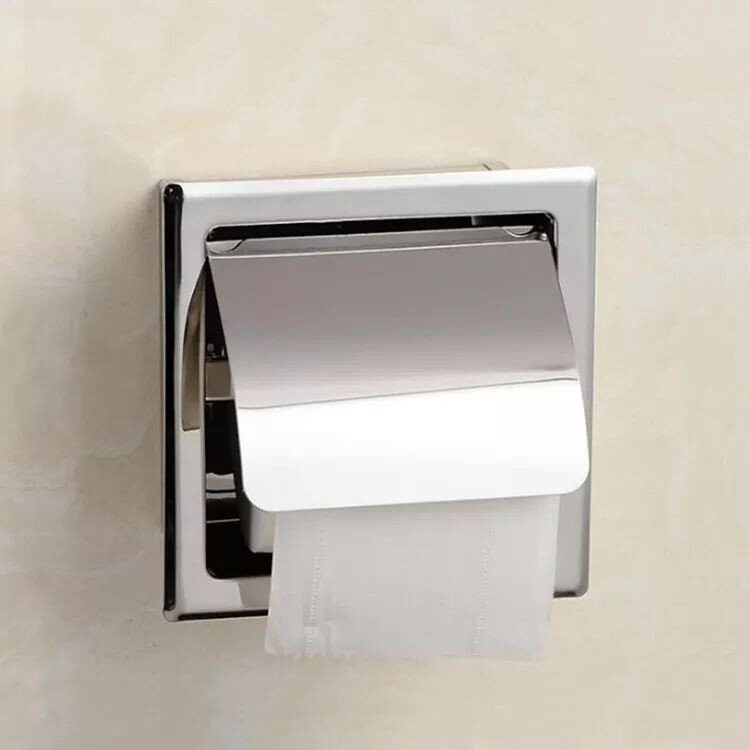 Утримувач для туалетного паперу з нержавіючої сталі марки 201. Вбудовується у стіну. Якість виробу – середня.