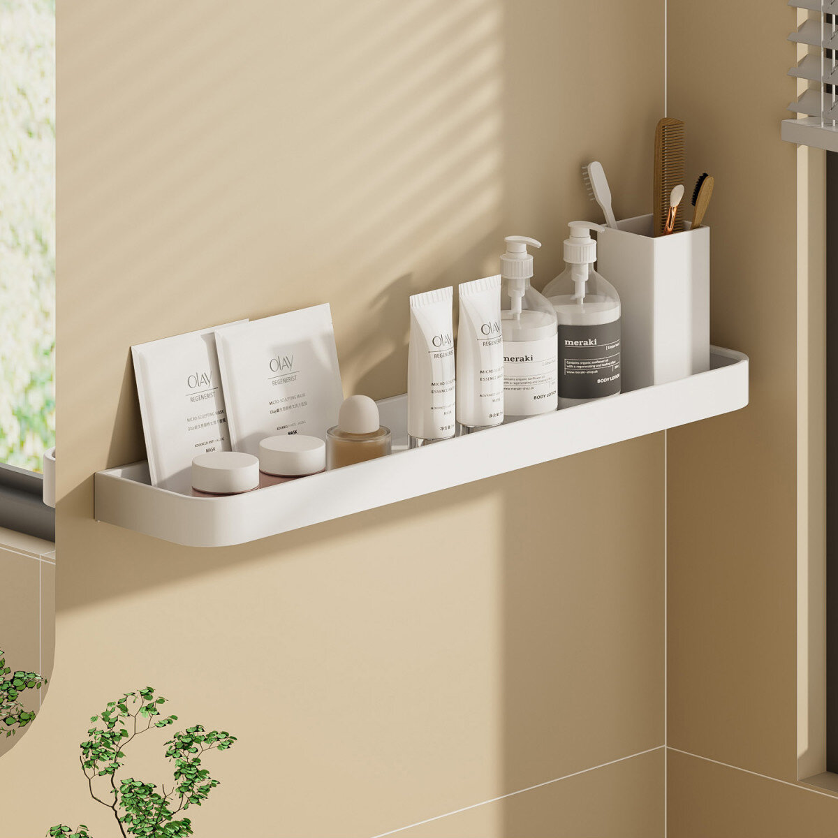 Полка для ванної виготовлена ​​з алюмінію, стійка до впливу вологи, не іржавіє. Полка має сучасний дизайн (модерн, лофт), гармонійно поєднується з більшістю дизайнерських рішень при облаштуванні ванної кімнати. Покриття - грунт + фарба.