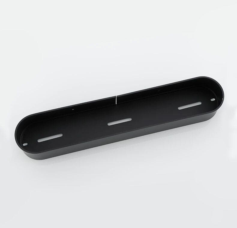 Полиця для ванної виготовлена ​​з алюмінію, стійка до дії вологи, не іржавіє. Полиця має сучасний дизайн (модерн, лофт), що гармонійно поєднується з більшістю дизайнерських рішень при облаштуванні ванної кімнати. Якість фарбування - середня.