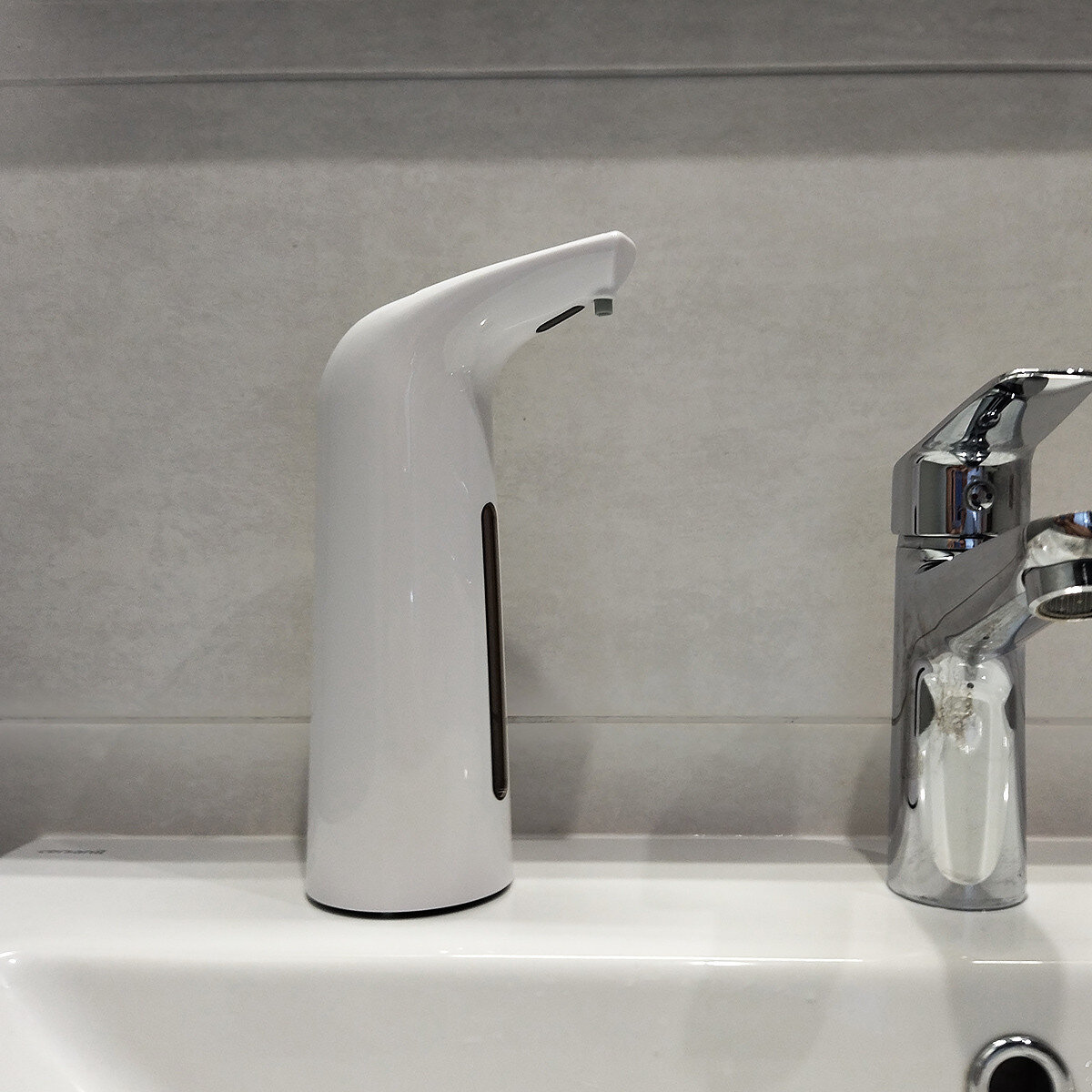 На відміну від аналогічних моделей у цьому дозаторі відсутня змінна колба (яка згодом може втрачати свої естетичні властивості), а мильний розчин заливається зверху в корпус пристрою - Це дуже зручно, і сам дозатор виглядає помітно краще.