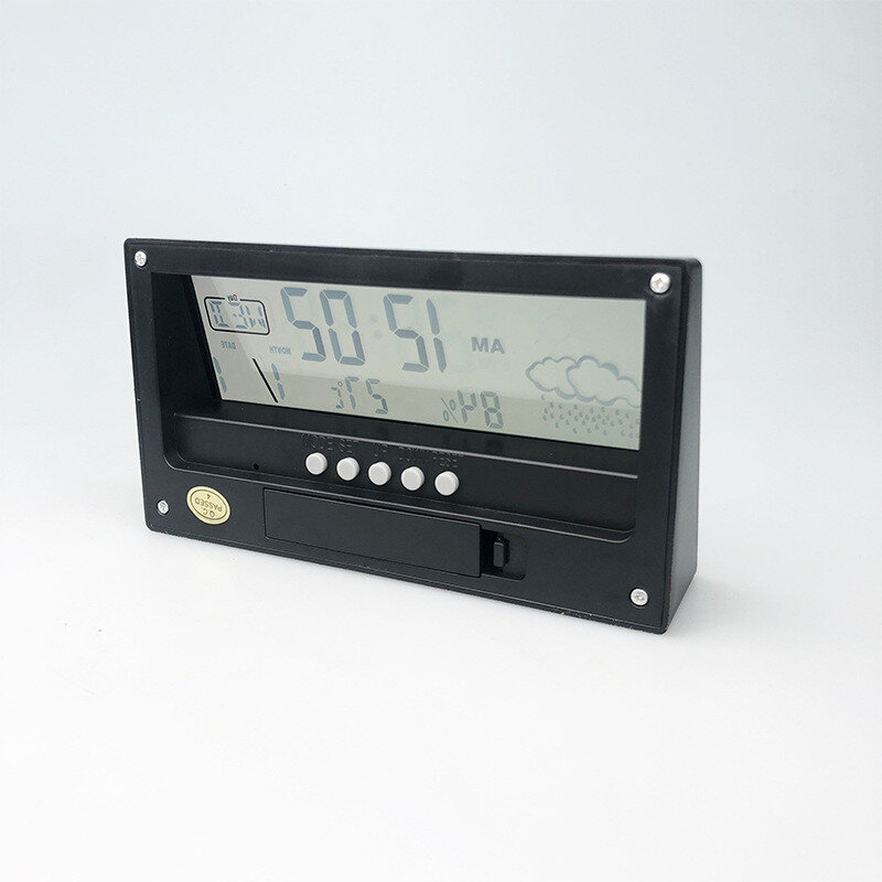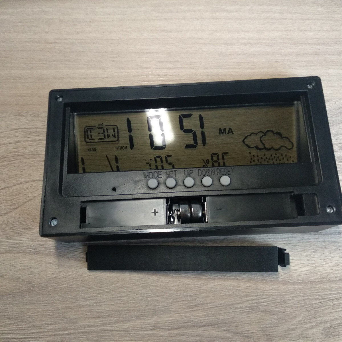 Є будильник, показують день тижня, дату, рік. Інструкція англійською.