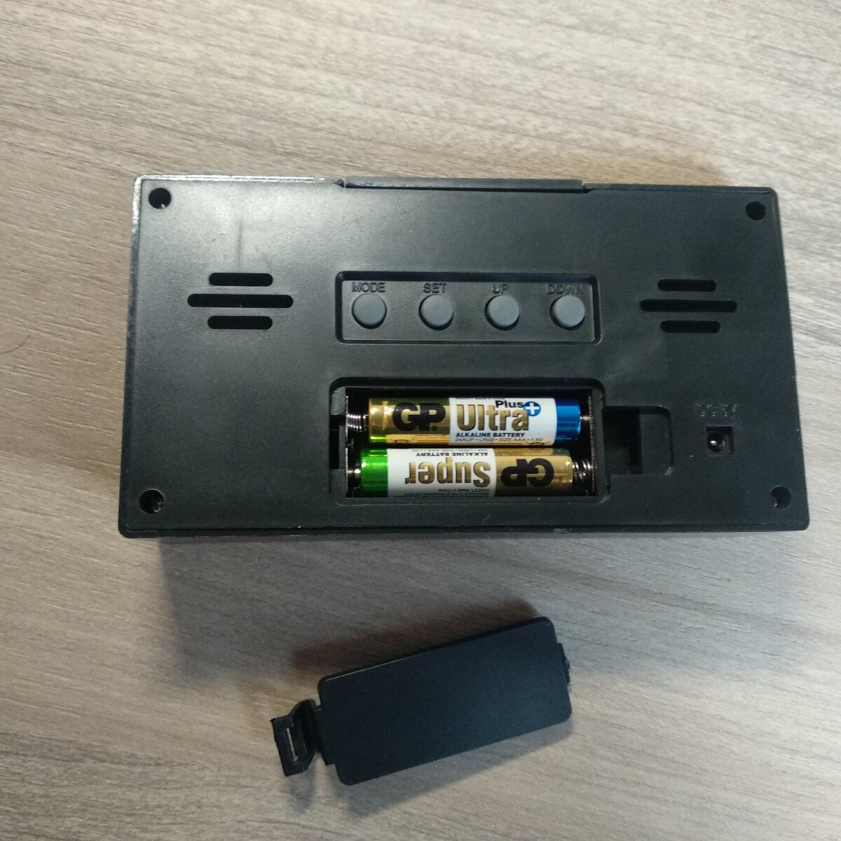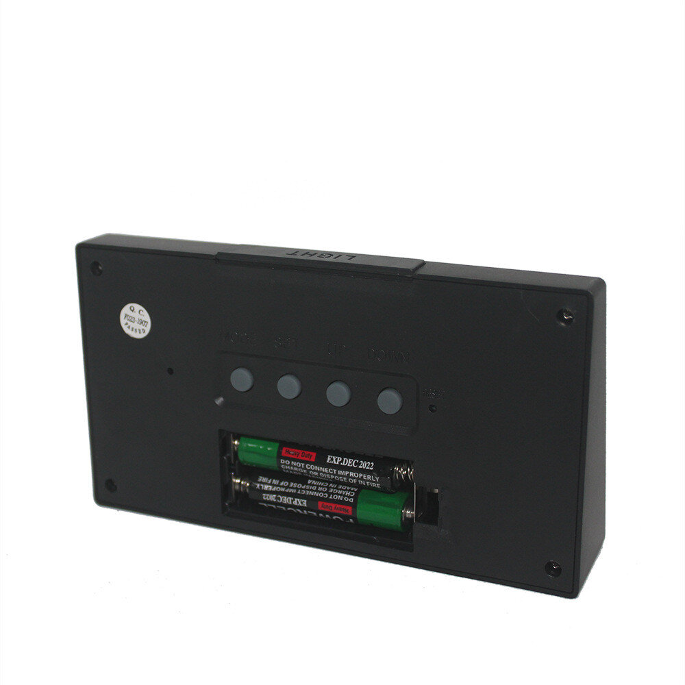 Є будильник, показує день тижня, дату, рік. Інструкція англійською.