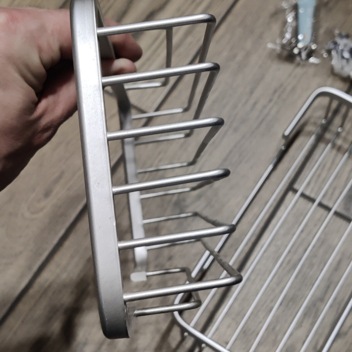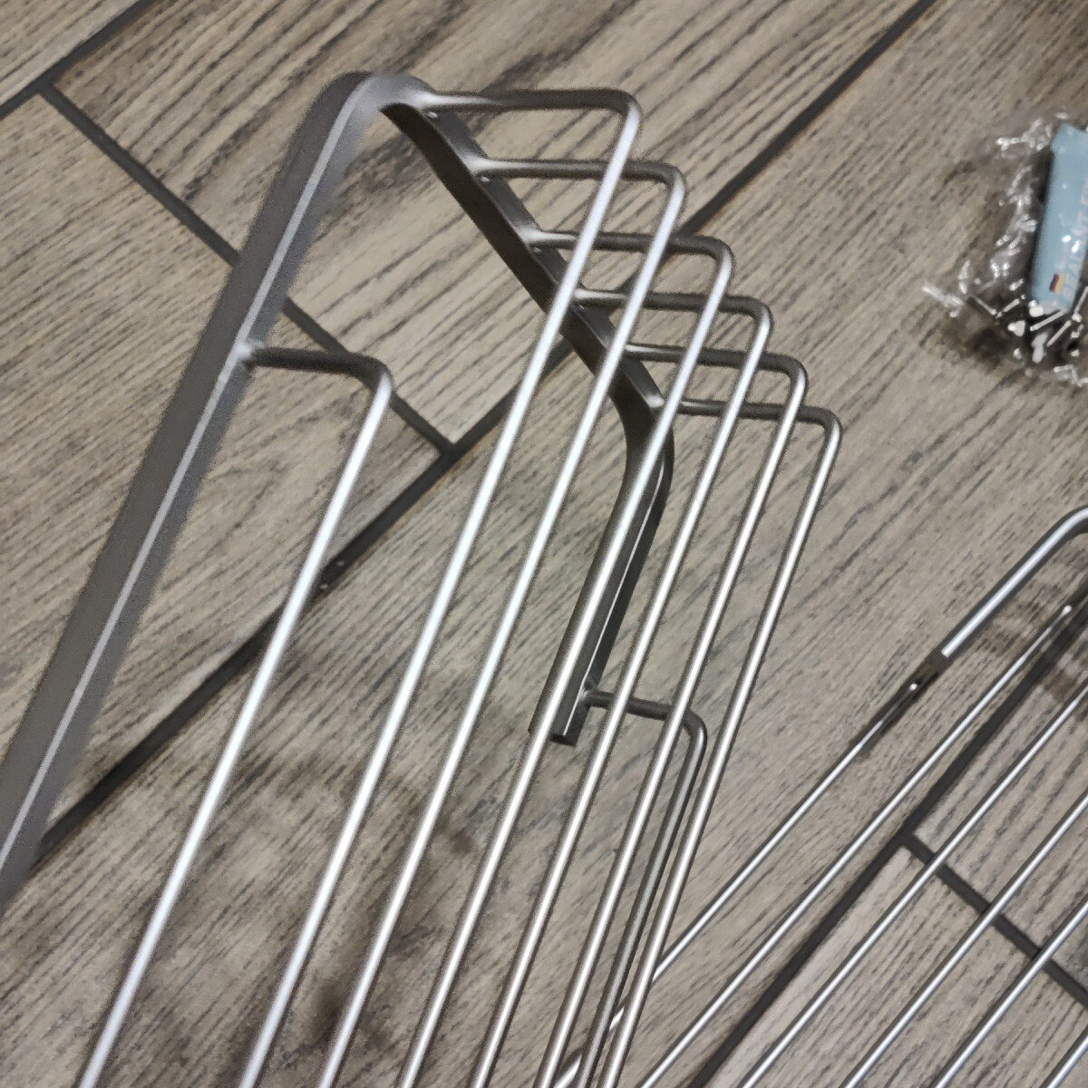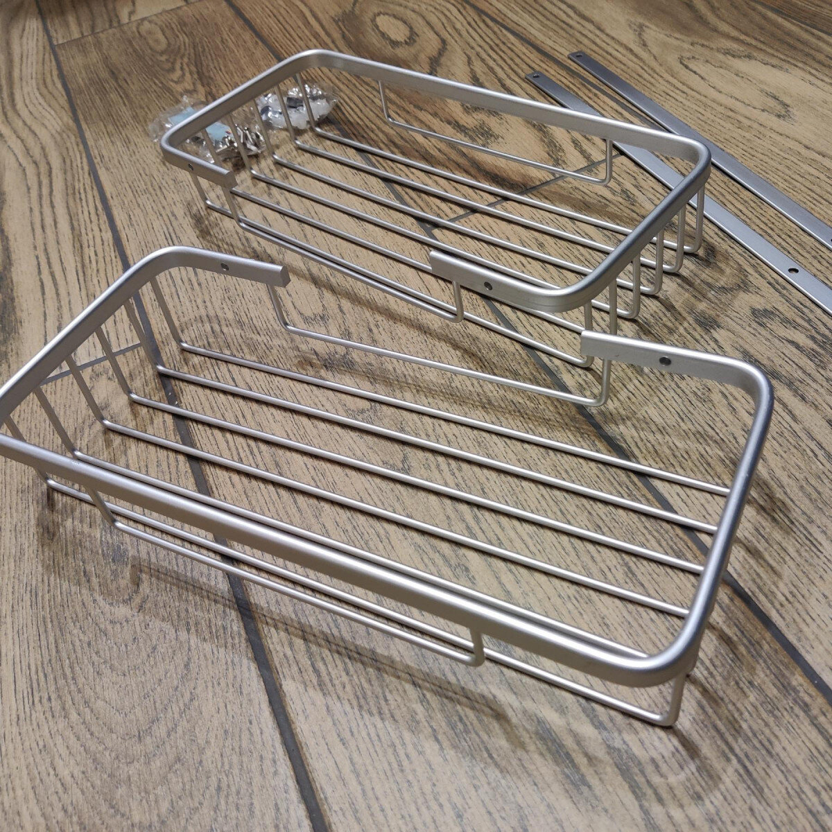 Надійна полиця для ванної кімнати. Полиця виготовлена ​​з алюмінію – міцна і не боїться корозії. Має стильний дизайн, сріблястий колір та гладку поверхню. Нема гострих країв. Поставляється у частково розібраному вигляді, легко збирається.