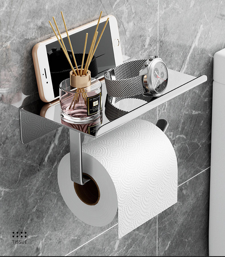 Тримач для туалетного паперу із нержавіючої сталі. Не боїться корозії. Надійне кріплення за допомогою шурупів або клейких пластин (ідуть у комплекті). Зверху є поличка.