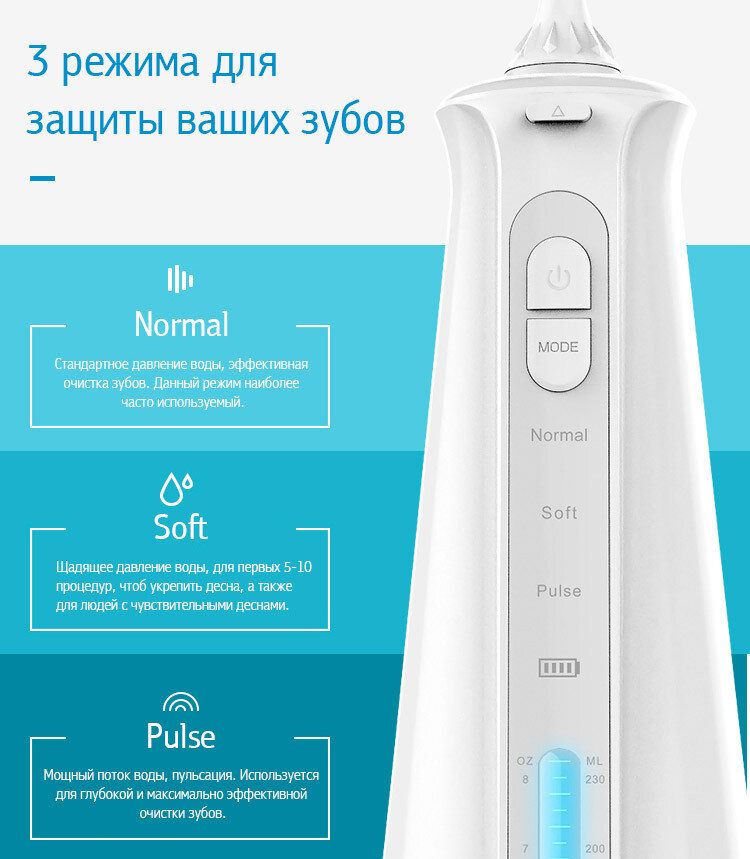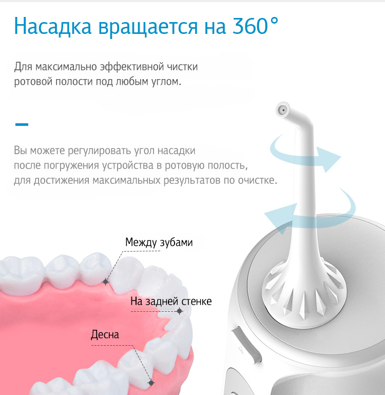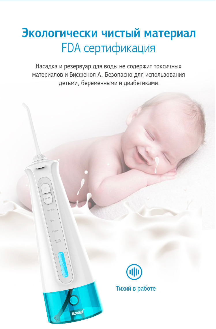 Этот портативный ирригатор поможет вам идеально очистить и отбелить зубы и улучшить здоровье десен. Благодаря уникальной технике пульсации, беспроводной ирригатор Nicefeel Multitronic обеспечивает массирующие импульсы с частотой 1400 - 1800 импульсов в минуту с давлением от 2 до 7 бар.