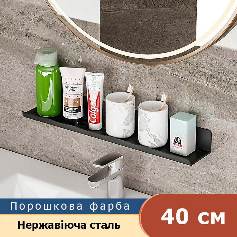 Полка для ванної з нержавіючої сталі. Полка виготовлена ​​в стилі Лофт, гармонійно поєднується з більшістю дизайнерських рішень при облаштуванні ванної кімнати. Покриття -  порошкова фарба, якість покриття середня.