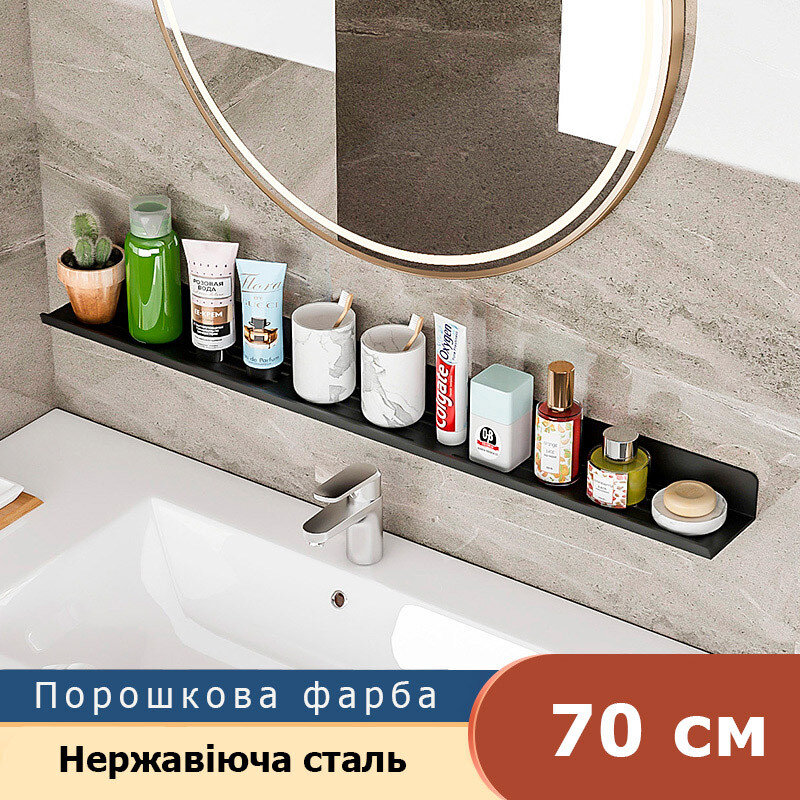 Полка для ванної з нержавіючої сталі. Полка виготовлена ​​в стилі Лофт, гармонійно поєднується з більшістю дизайнерських рішень при облаштуванні ванної кімнати. Покриття -  порошкова фарба, якість покриття середня.