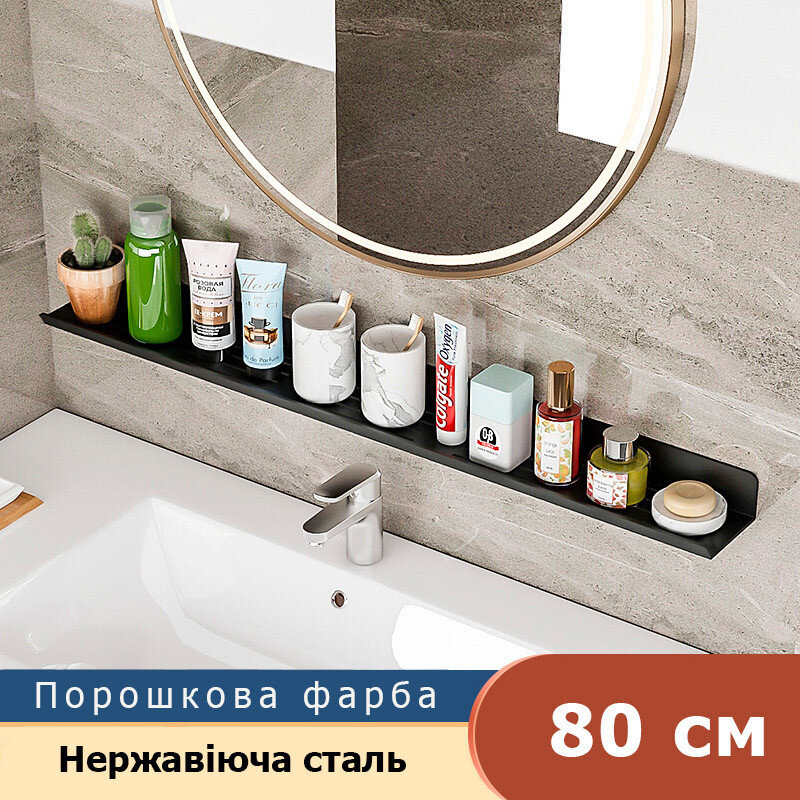 Полка для ванної з нержавіючої сталі. Полка виготовлена ​​в стилі Лофт, гармонійно поєднується з більшістю дизайнерських рішень при облаштуванні ванної кімнати. Покриття -  порошкова фарба, якість покриття середня.