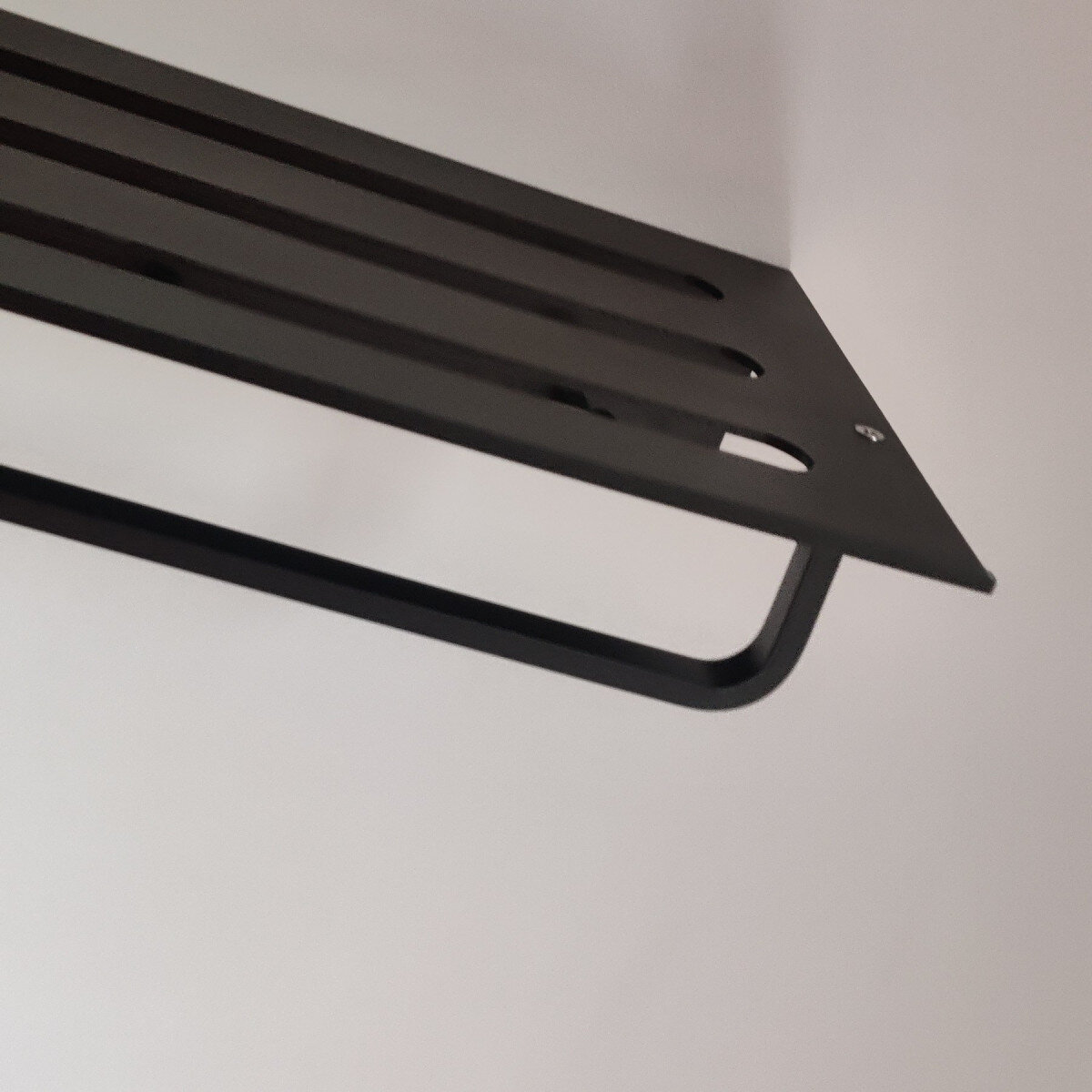 Полиця шириною 60 см і глибиною 22 см забезпечує достатньо місця для рушників та іншого приладдя у ванній кімнаті. Довжина гачків складає 5,5 см, завдяки чому рушники завжди будуть на місці. Висота тримача для рушників становить 7,5 см, а відстань від стіни - 13 см.