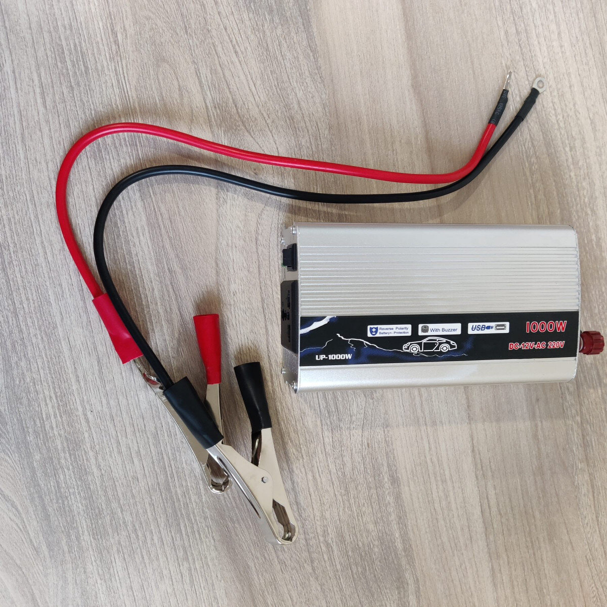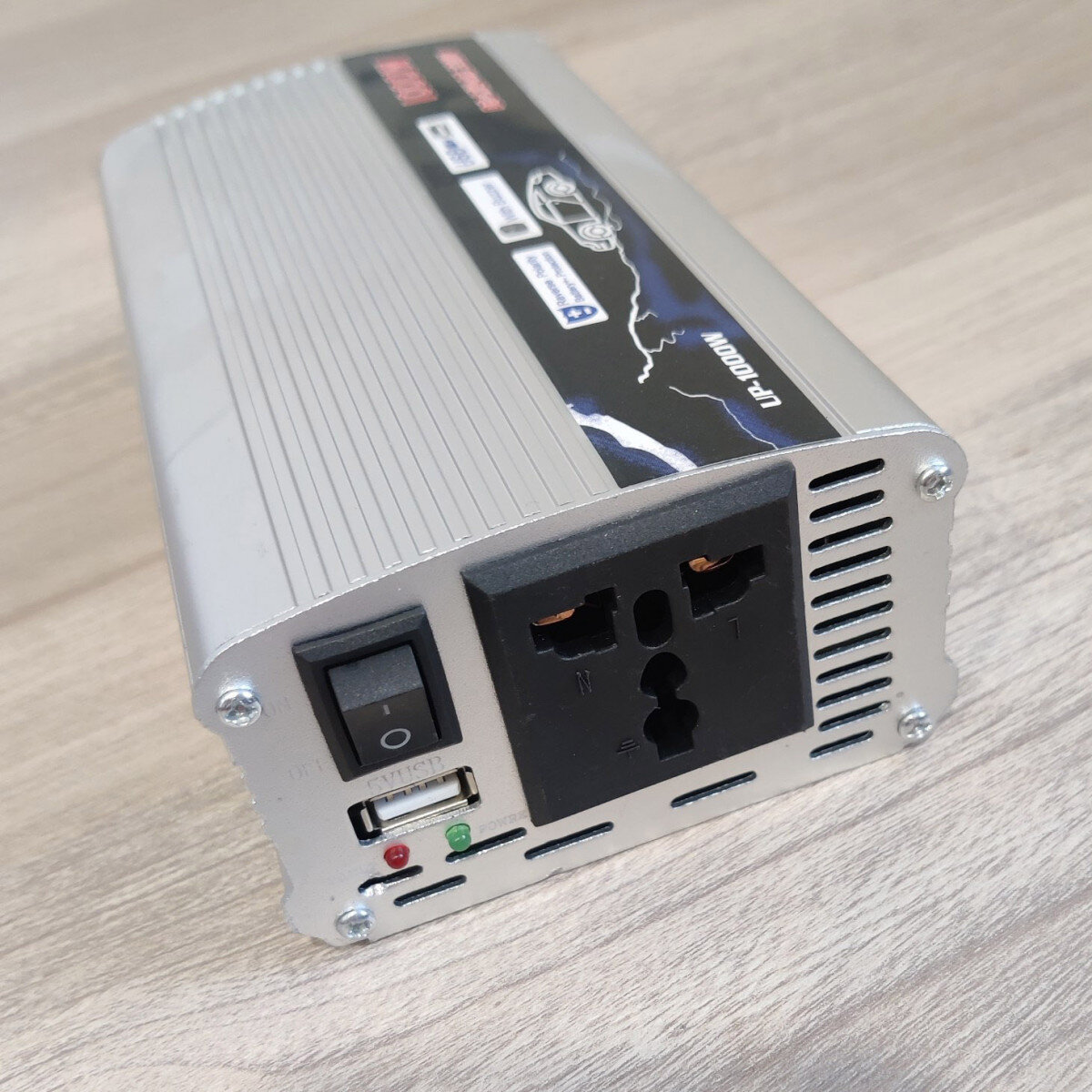Інвертор в алюмінієвому тепловідвідному корпусі потужністю 1000 Ватт. Є USB вихід. Живлення від акумулятора чи сонячної панелі. Модифікована синусоїда.