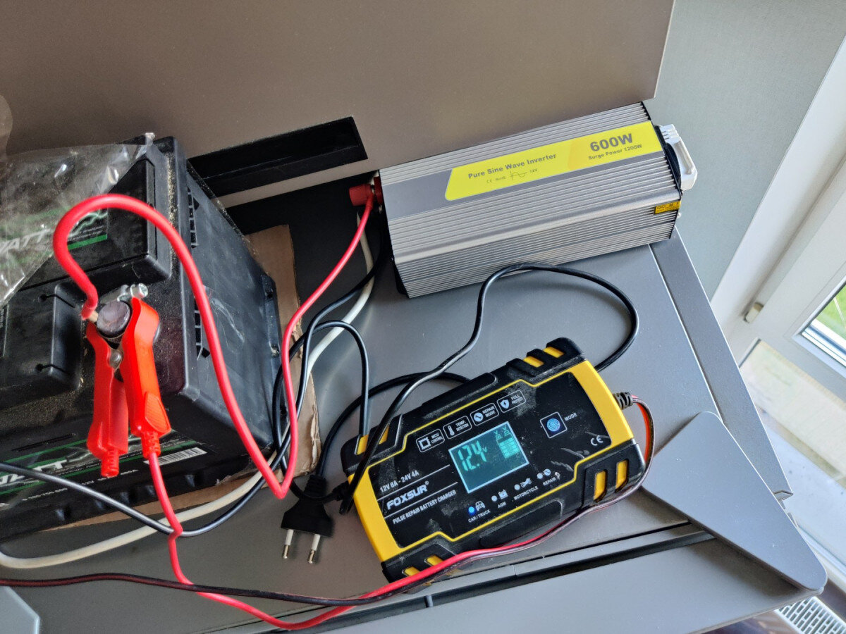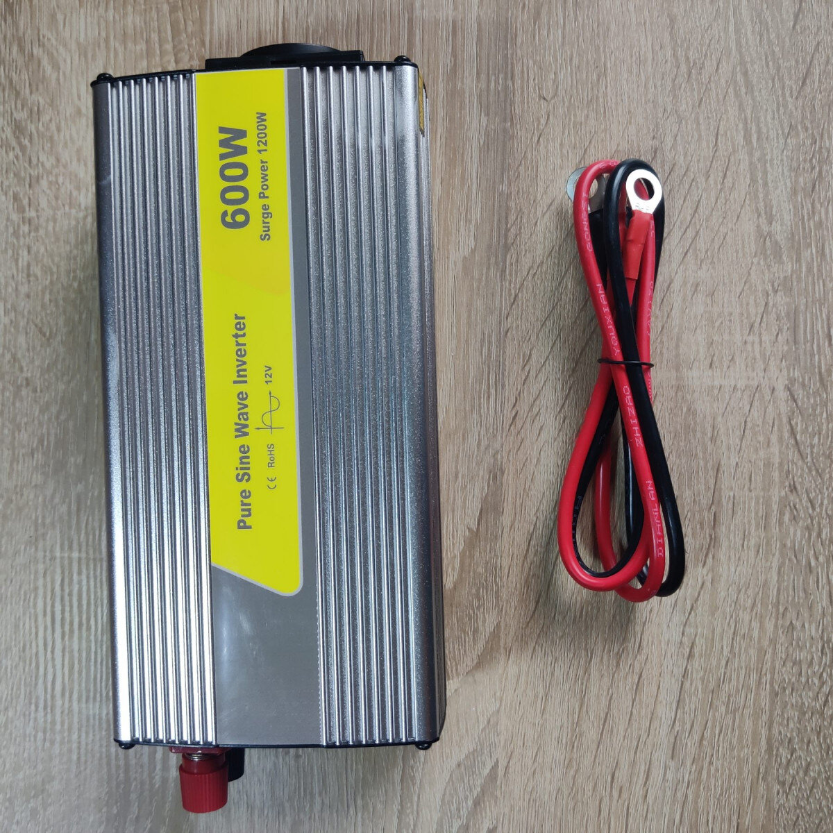 Високочастотний інвертор в алюмінієвому тепловідвідному корпусі потужністю 600 Ватт (пік до 1200 Ватт). Є USB вихід. Живлення від акумулятора чи сонячної панелі. Є захист від короткого замикання, перевантаження, високої і низької напруги, перегріву.