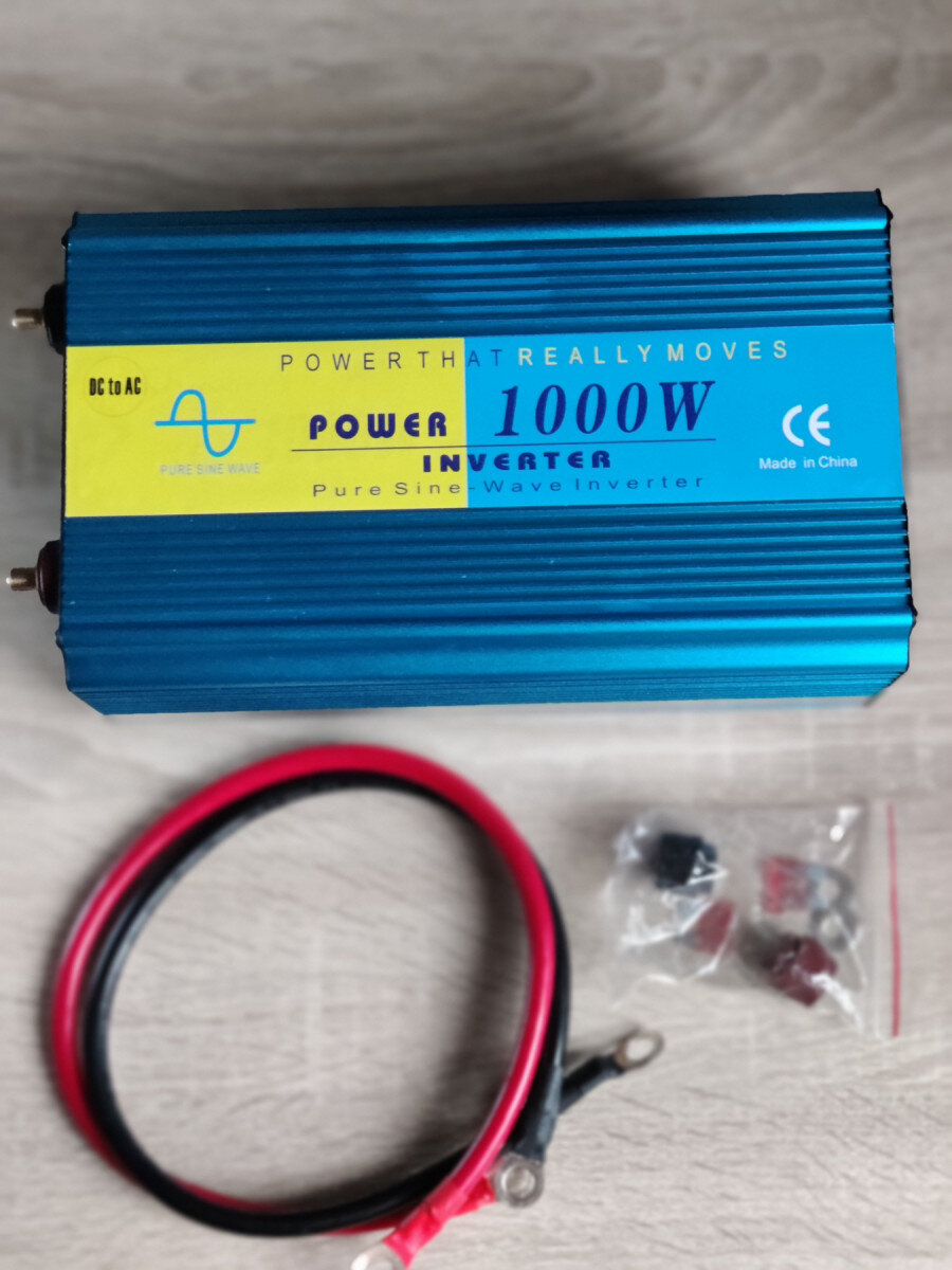 Высокочастотный инвертор в теплоотводящем корпусе мощностью 1000 Ватт (пик до 2000 Ватт). Присутствует USB выход. Питание от аккумулятора или солнечной панели. Присутствует защита от короткого замыкания, перегруза, высокого и низкого напряжения, перегрева.