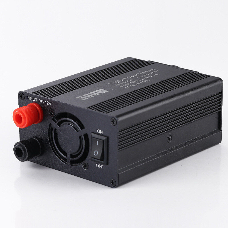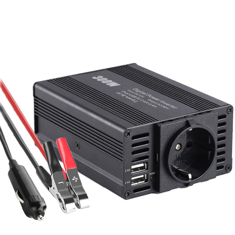 Высокочастотный инвертор номинальной мощностью 300Вт (пик - 600Вт). Питание от автомобильного прикуривателя или аккумулятора (2 кабеля подключения в комплекте).