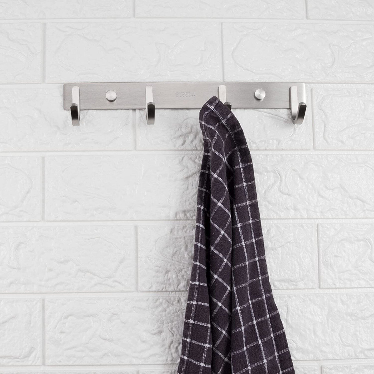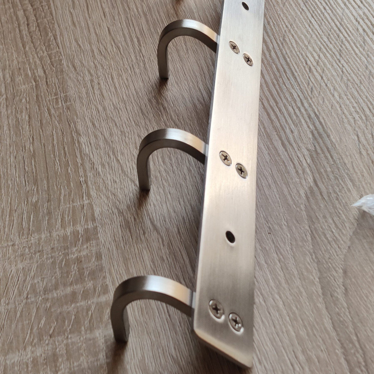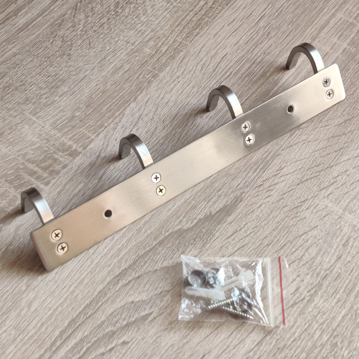 Вішалка із нержавіючої сталі. Виготовлена ​​з товстого матеріалу, не гнеться. Матова поверхня. Кріпиться шурупами.