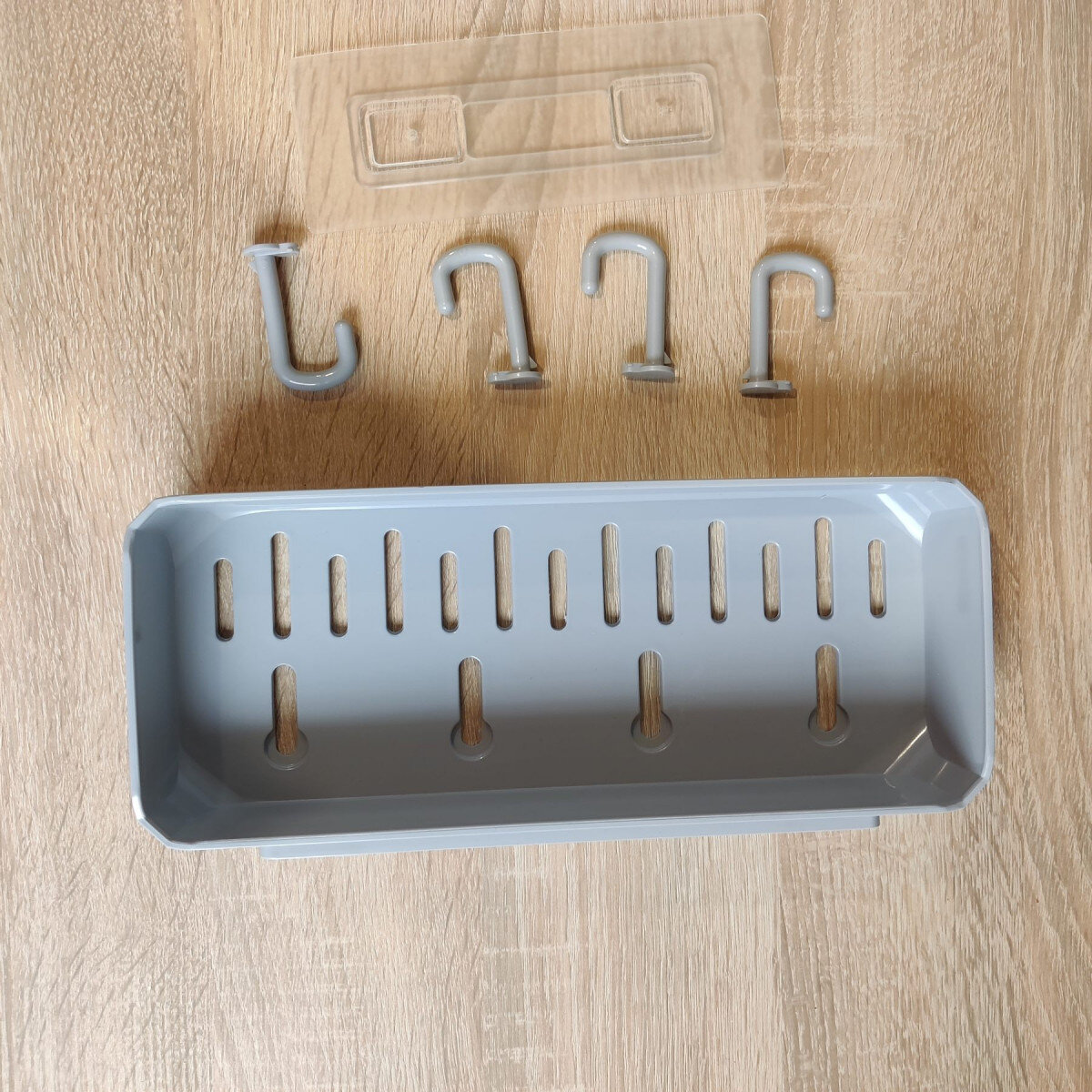 Пластик износостойкий, не подвержен коррозии. Снизу и сверху полки есть отверстия для стекания воды, что обеспечит сухость ваших предметов, даже если разместить ее возле влажного места.