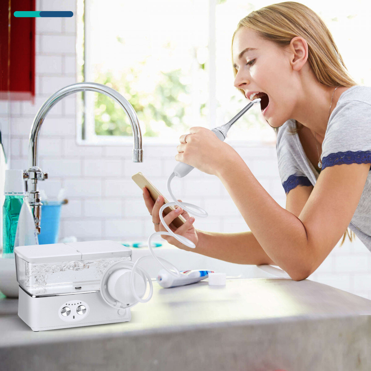 Цей іригатор для порожнини рота має 6 рівнів тиску, які можна легко відрегулювати відповідно до ваших індивідуальних потреб, забезпечуючи комфортне та персоналізоване чищення.