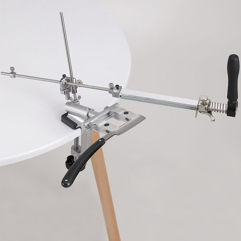 Верстат легко зібрати та розібрати за необхідності. Поставляється в розібраному вигляді в комплекті з 4 абразивними камнями (120# 320# 600# 1500# GRIT) без бланків. Конструкція дозволяє використовувати як бланки, так і камні без них.