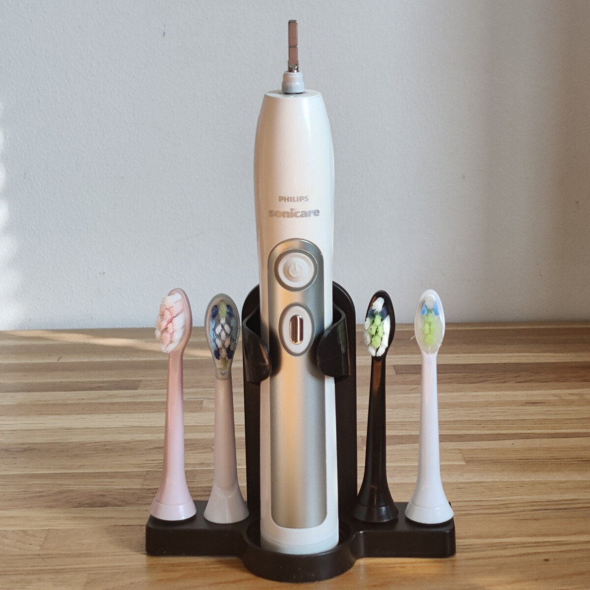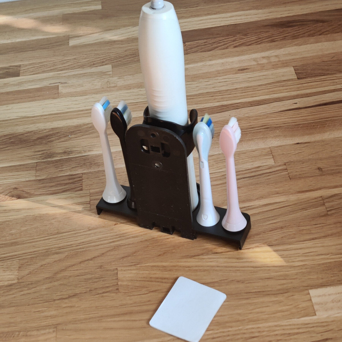 Підставка дозволяє надійно зафіксувати 4 змінні насадки та зубну щітку (за потреби). Розміри ідеально підігнані для 99% зубних щіток Philips .