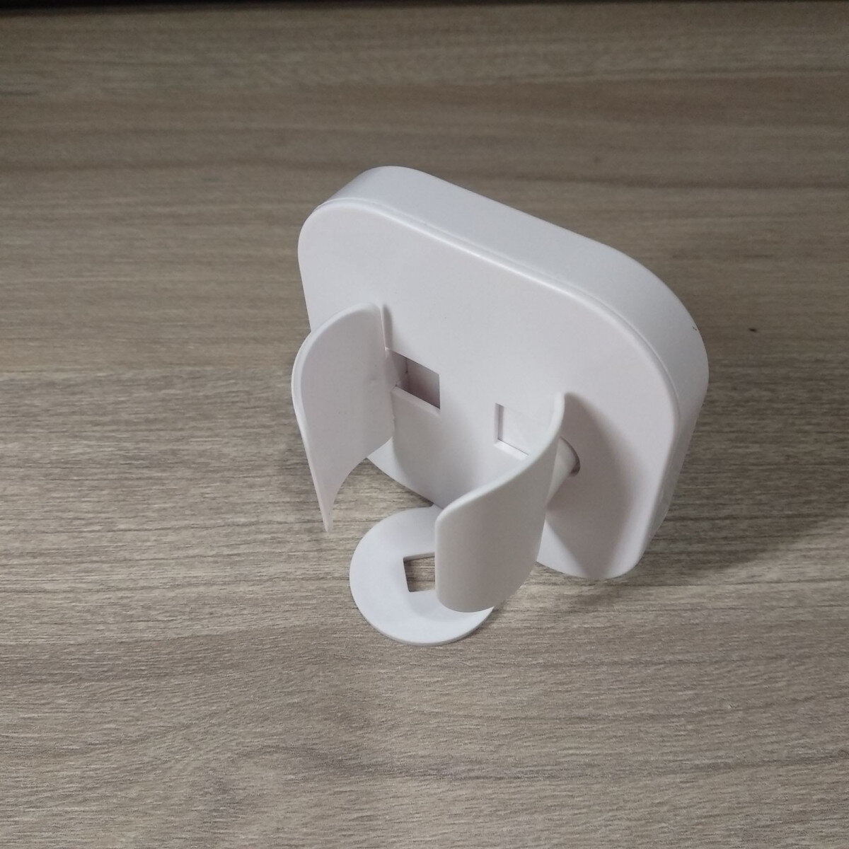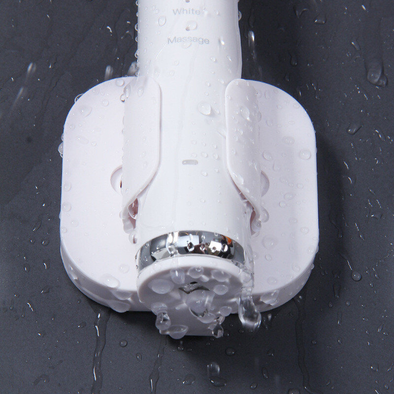 Тримач для електричної зубної щітки клеїться на стіну за допомогою скотчу (у комплекті). Підходить для будь-яких зубних щіток діаметром рукоятки від 18 до 32 мм. При встановленні зубної щітки в утримувач вона затискається спеціальним пружинним механізмом.