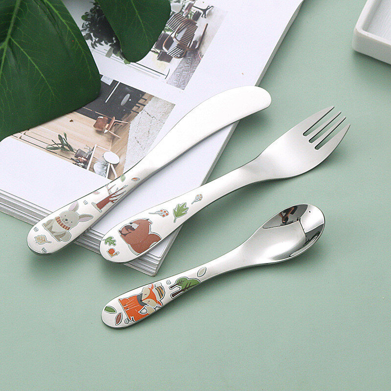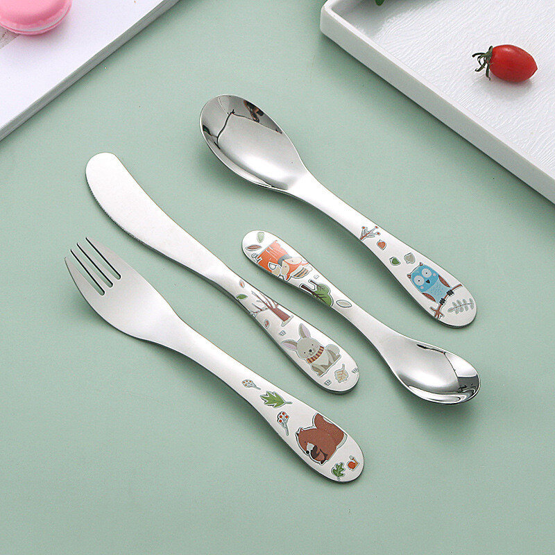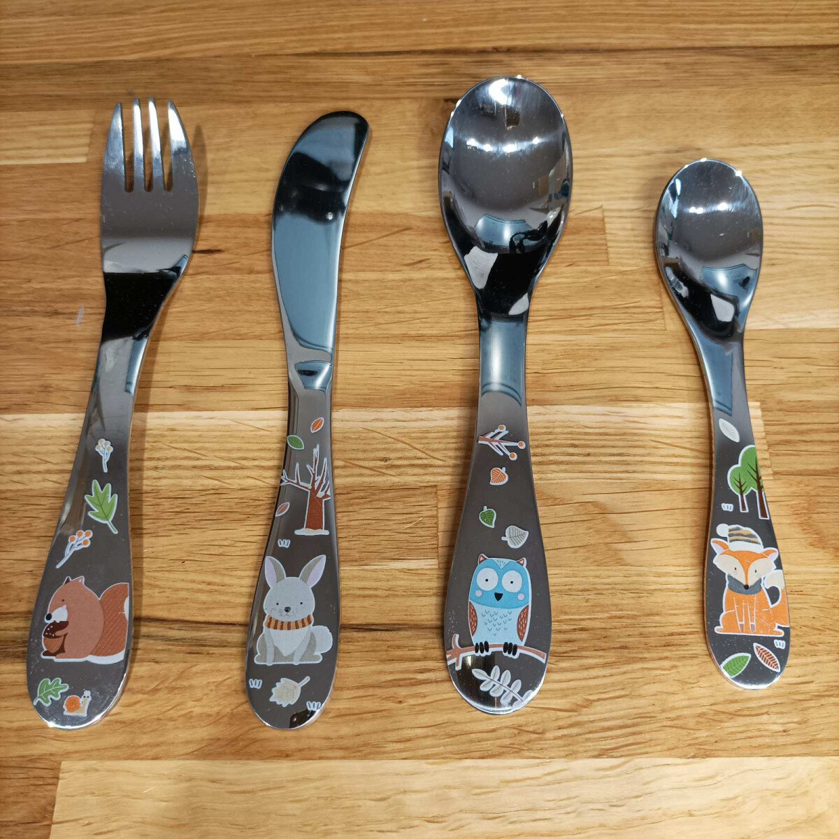 Набір столових приладів із високоякісної нержавіючої сталі марки 304. На прилади нанесені зносостійкі картинки.