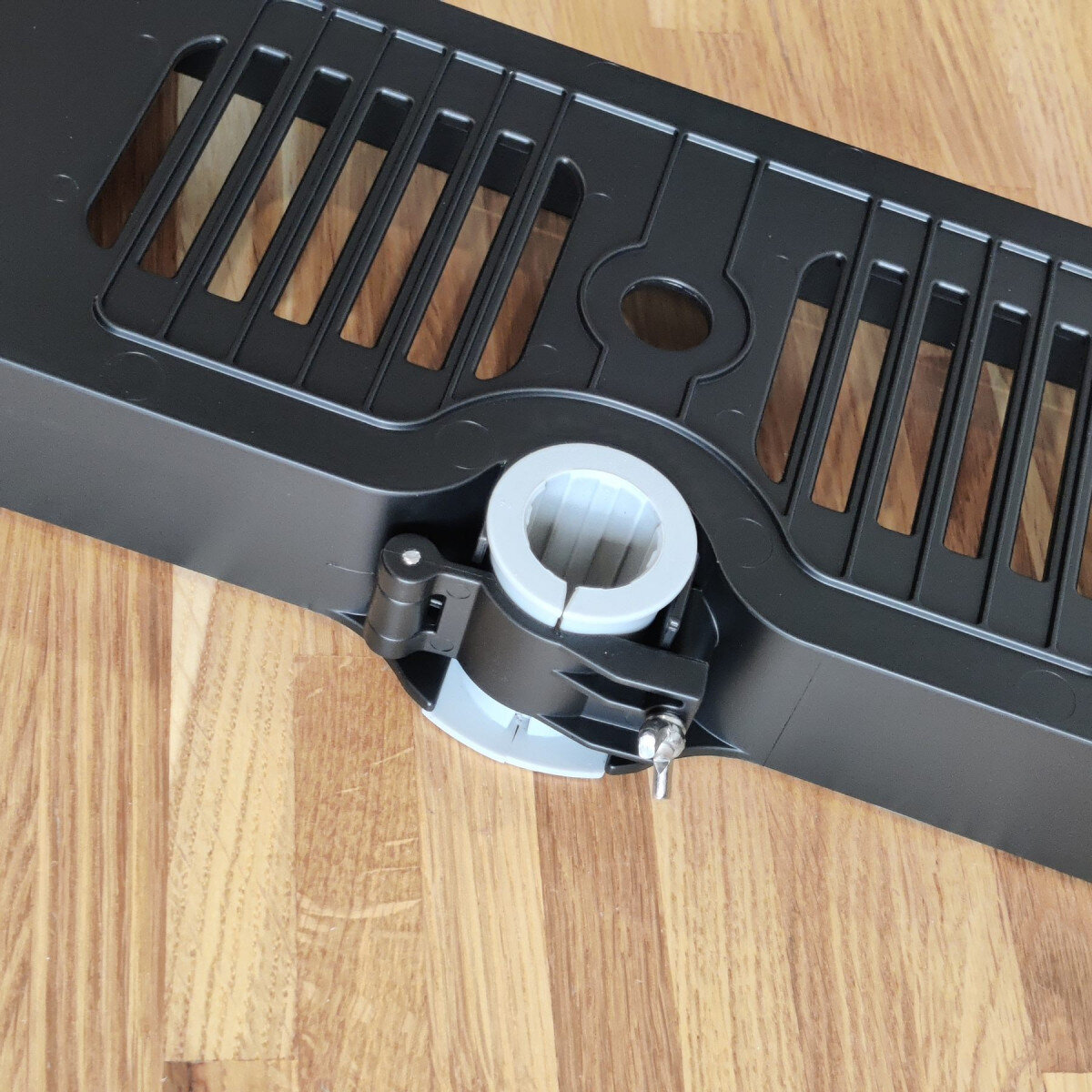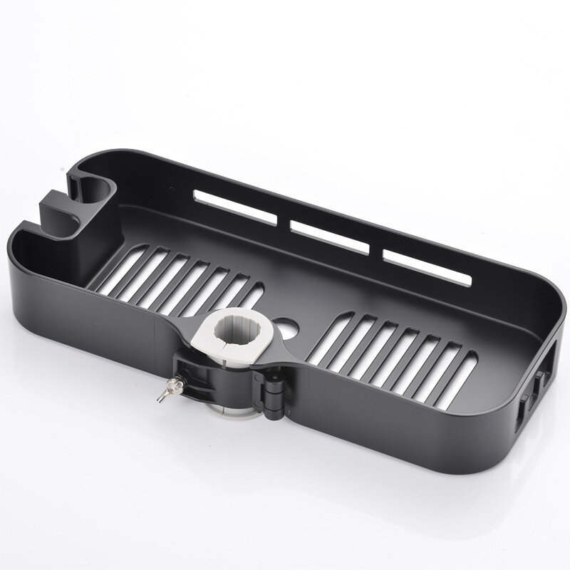 Полиця на душову стійку, виготовлена ​​із пластику. Має гачки та місце для душової лійки.