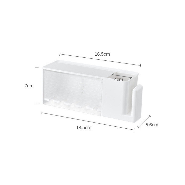Вміщується 5 зубних щіток, зубна паста та можна повісити склянку (у комплекті не йде).