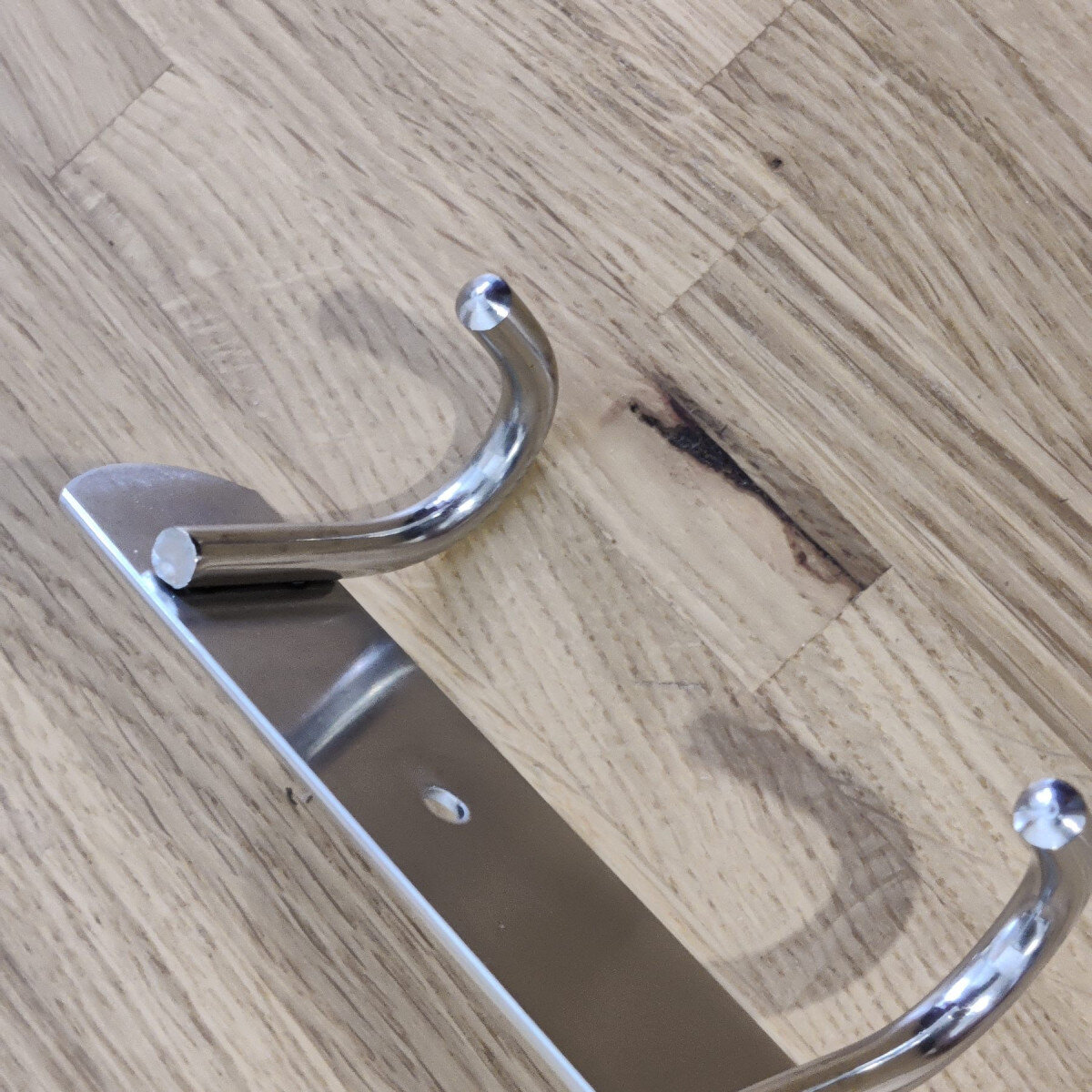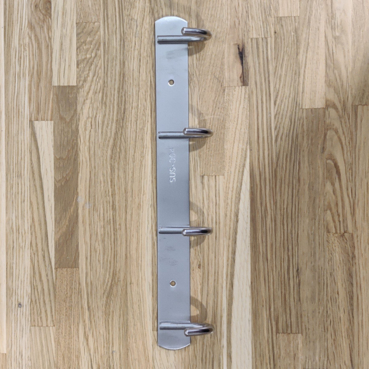 Вішалка із нержавіючої сталі. Гачки товсті, основа - лист 2мм, це товщі ніж у аногіческіх вішалок. Кріпиться шурупами.