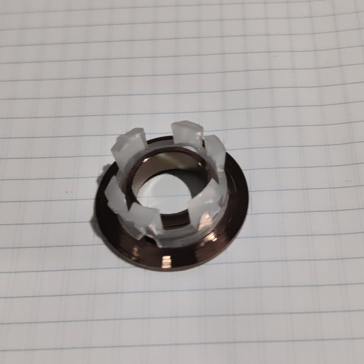 Заглушка на переливний отвір для раковини (декоративна кришка). Виготовлена ​​з латуні. Виріб вироблено методом фрезерування та подальшої обробки.