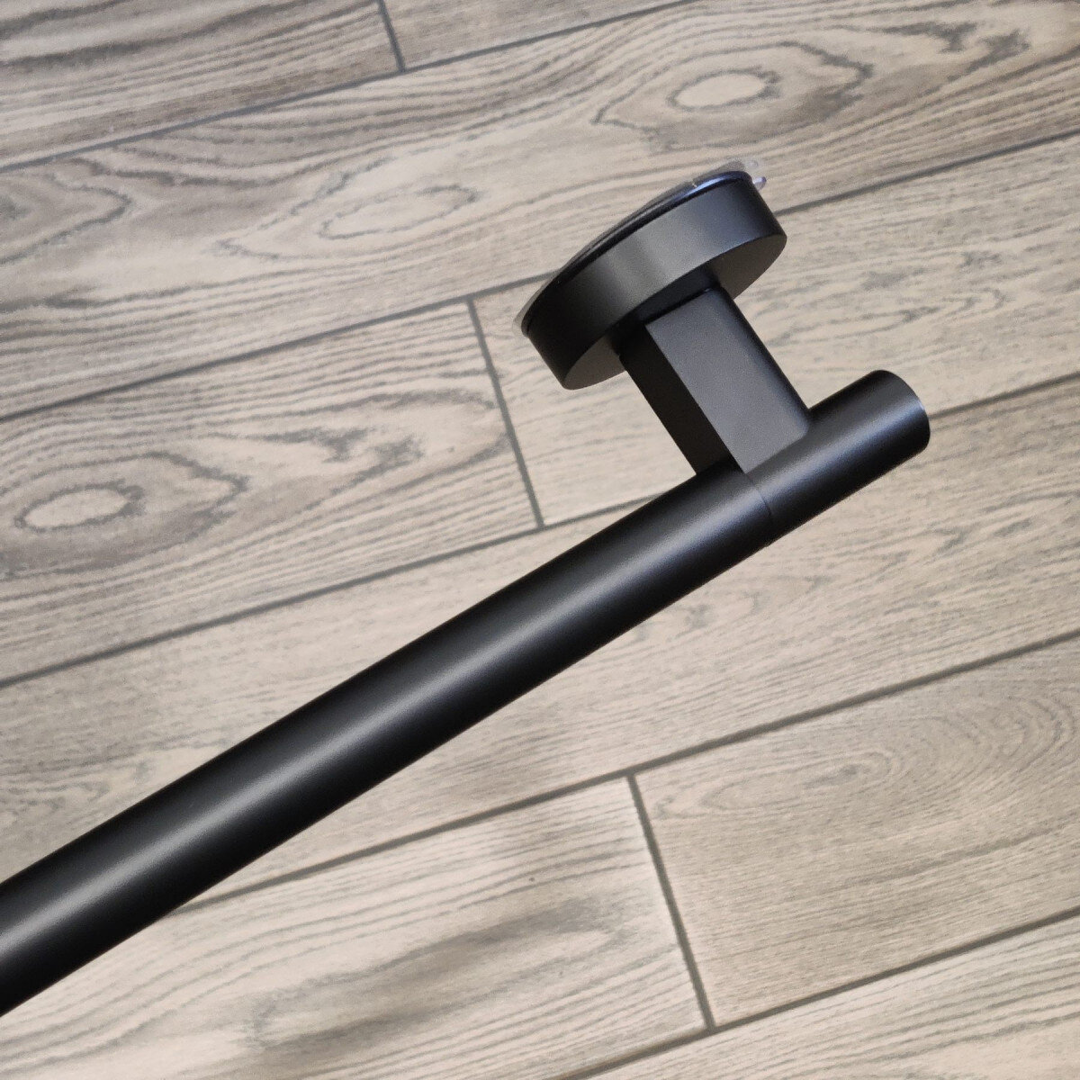 Вішалка для рушників у ванну із вакуумним кріпленням на стіну. Кріплення виготовлене з пластику, штанга для рушників - з алюмінію. Присоски приховані, це робить товар більш стильним та сучасним.