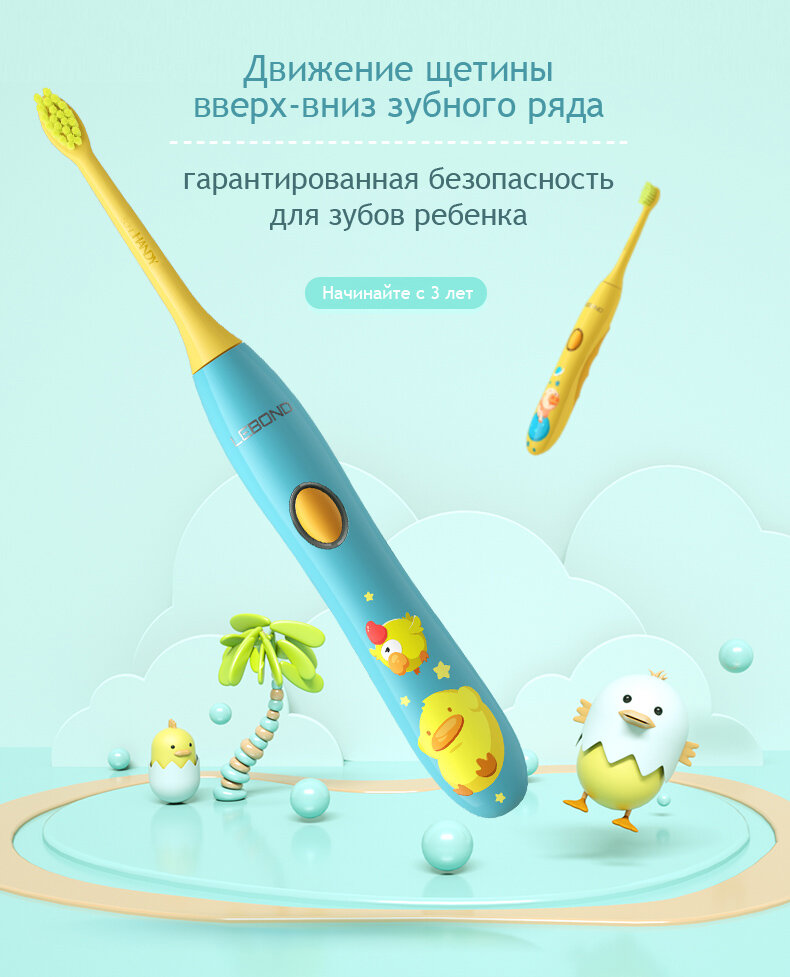 Звукова зубна щітка Lebond YOYO має зменшені габарити і вага, що робить її зручною для використання дітьми. Дизайн товару привертає увагу і викликає інтерес у малюків.