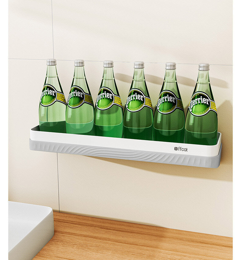 Полиця для ванної виготовлена ​​із пластику. Хороша якість, простий монтаж за допомогою клейких пластин.