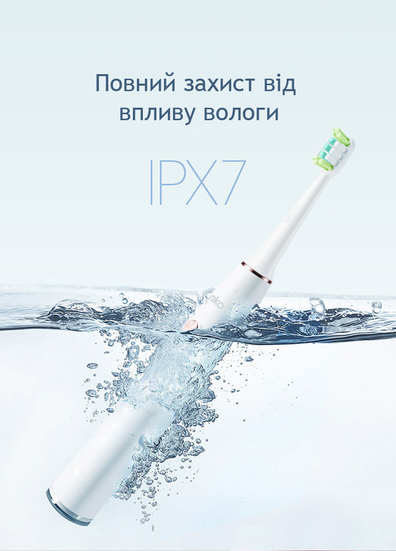 Зубна щітка не боїться вологи та заряджається через звичайний Mini-USB кабель.