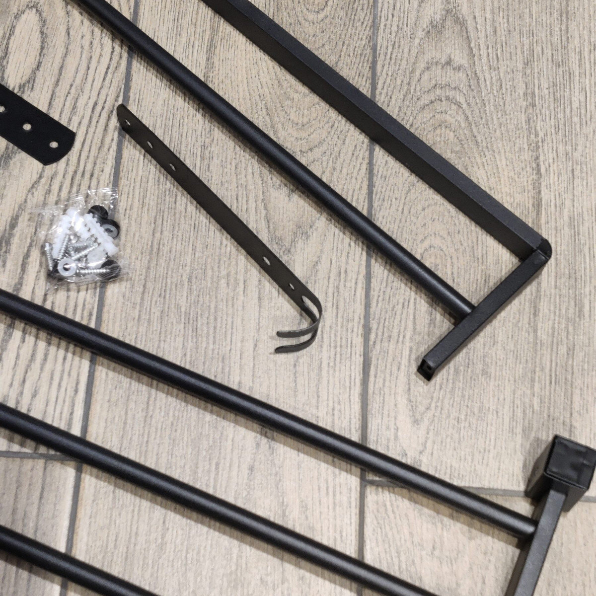 Тримач для рушників з алюмінію та пластику. Утримувач витримує вагу до 5 кілограмів. Постачається у розібраному вигляді. Економ варіант (можливе не ідеальне фарбування).