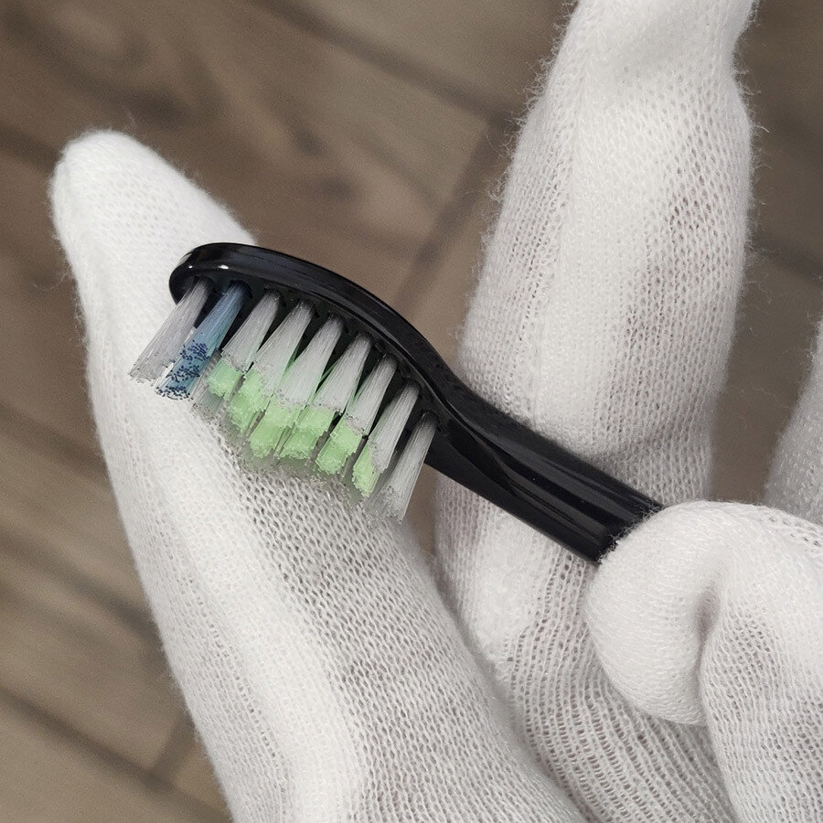 Насадки щітки розроблені таким чином, щоб забезпечити комфортне чищення та сприяти покращенню здоров'я порожнини рота. Підрізані щетинки забезпечують м'який вплив на ясна, забезпечуючи ретельне чищення зубів.