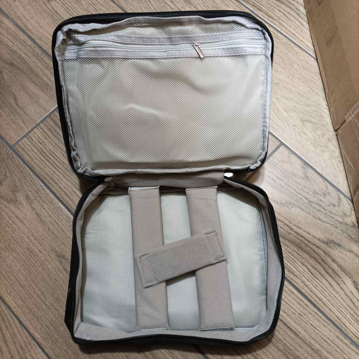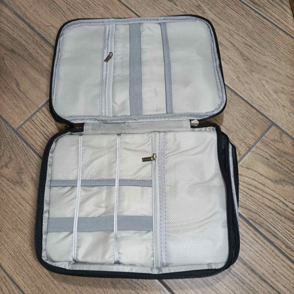 Сумка-органайзер для проводів, зарядок та дрібної електроніки. Органайзер складається з 2-х відсіків, що застібається на блискавку. Є ручка для перенесення.