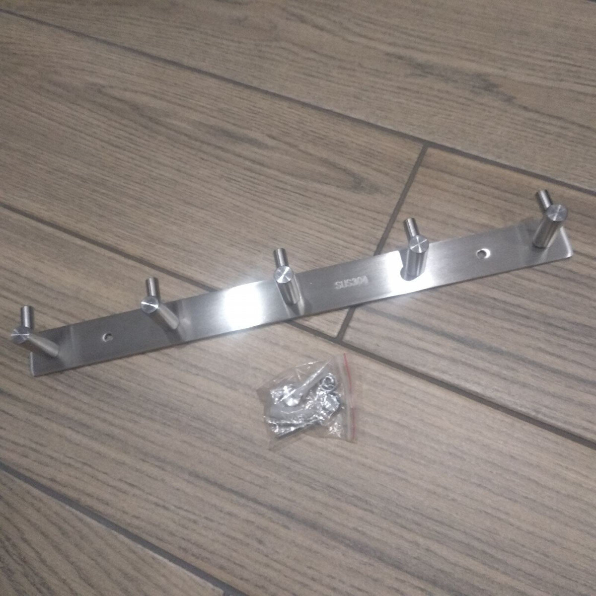 Вішалка із нержавіючої сталі. Виготовлена з товстого матеріалу, не гнеться. Матова поверхня. Кріпиться шурупами.
