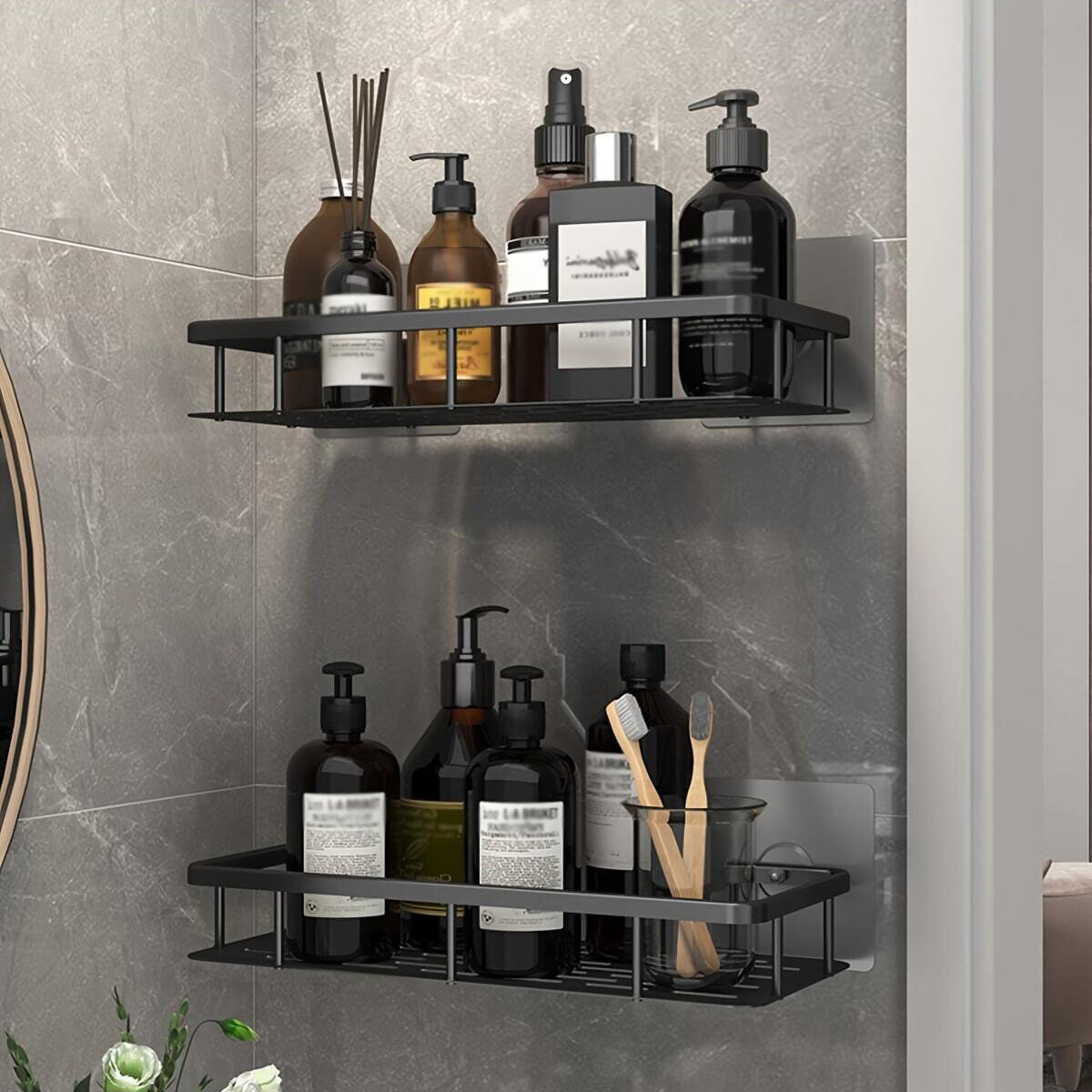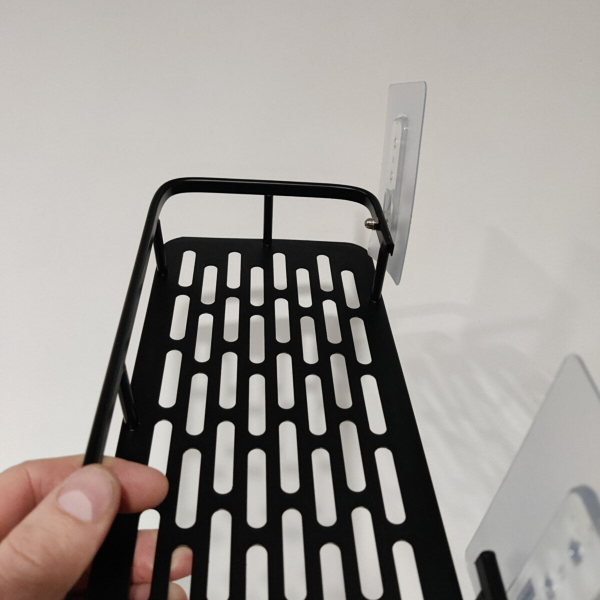 Надійна полиця для ванної кімнати. Полиця виготовлена ​​з алюмінію – міцна і не боїться корозії. Має стильний дизайн, чорний колір та гладку поверхню.