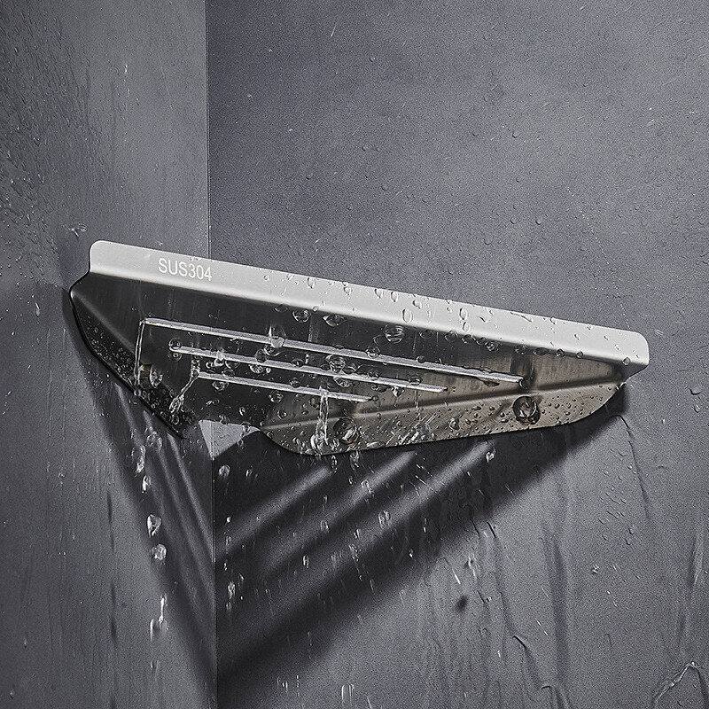 Кутова душова полиця для ванної з цільного листа нержавіючої сталі марки 304. Покриття – глянець (полірування).
