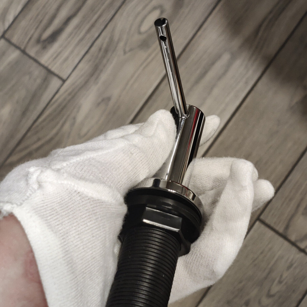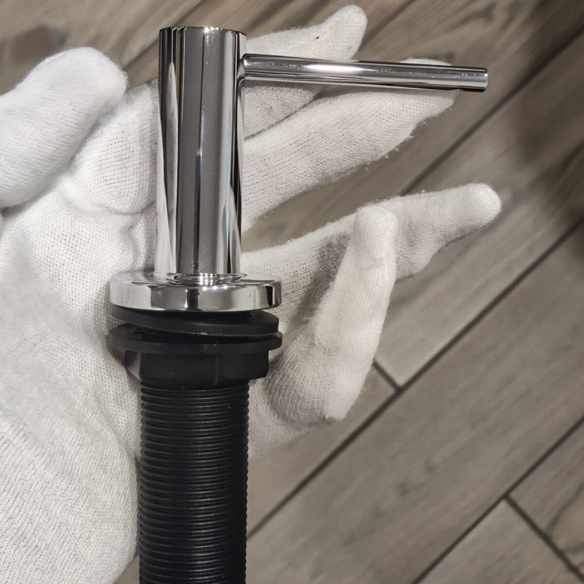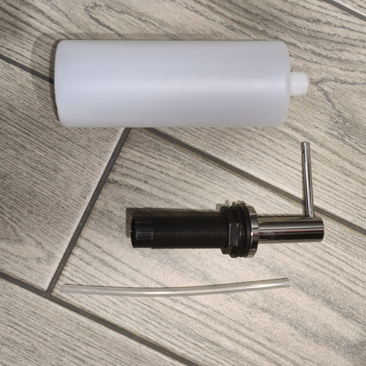 2. Дозатор. Складається з помпи (пружина з нержавіючої сталі) та натискного крана (виготовлений з латуні та покритий хромом)