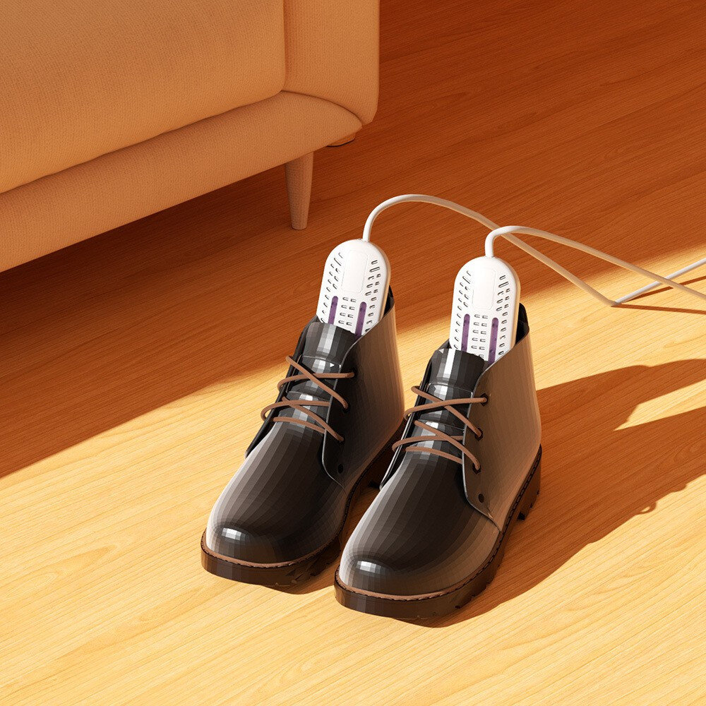 - Простота використання: пристрій не має таймера, що робить його легким в експлуатації. Просто вставте сушарку у взуття, увімкніть її та дайте їй час для сушіння, дезінфекції та ароматизації.