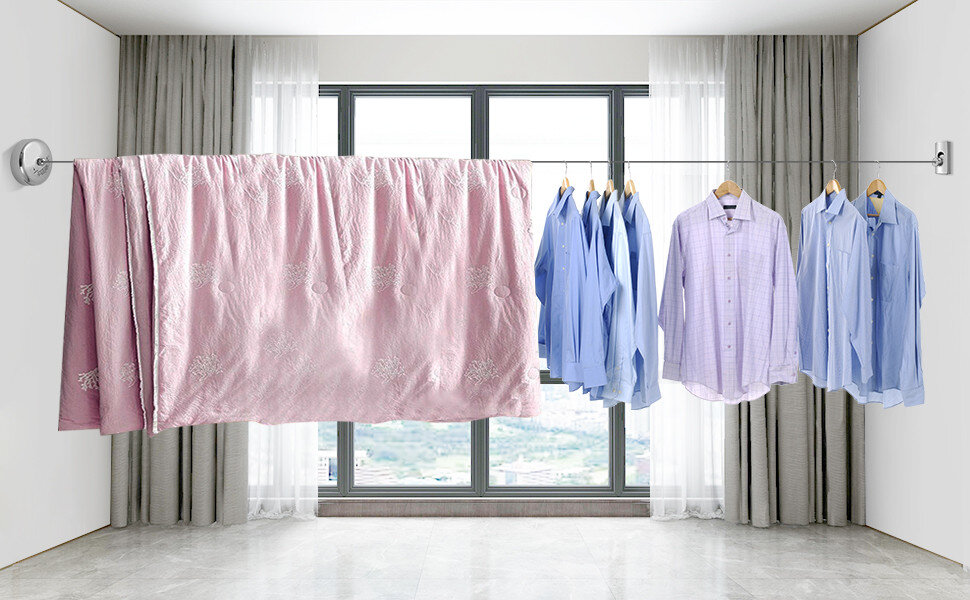 Білизна мотузка використовується для сушіння білизни на балконі, у ванній кімнаті, на кухні або в будь-якому іншому зручному місці. Система має фіксатор, завдяки якому сталевому тросі розтягується на потрібну відстань (максимум 3,8 метра).