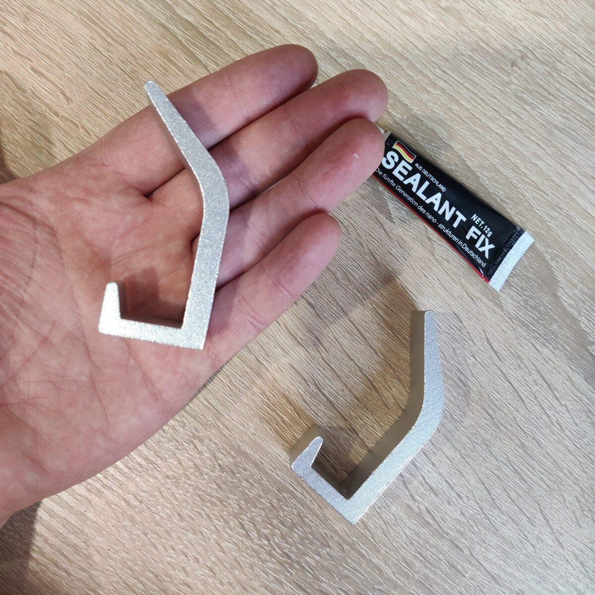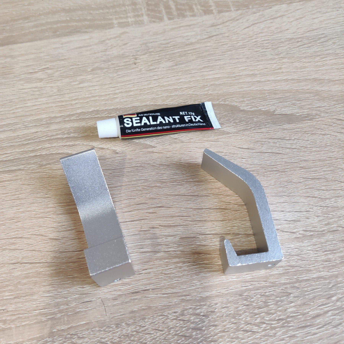 Гачок, що клеїться, виготовлений алюмінію. Витримує навантаження до 4 кг. Середня якість покриття, можливі виробничі сліди (приклади на фотографіях до товару) . Незважаючи на це, цей товар здатний задовольнити потреби більшості користувачів, але не для елітних ремонтів. Матові текстури.