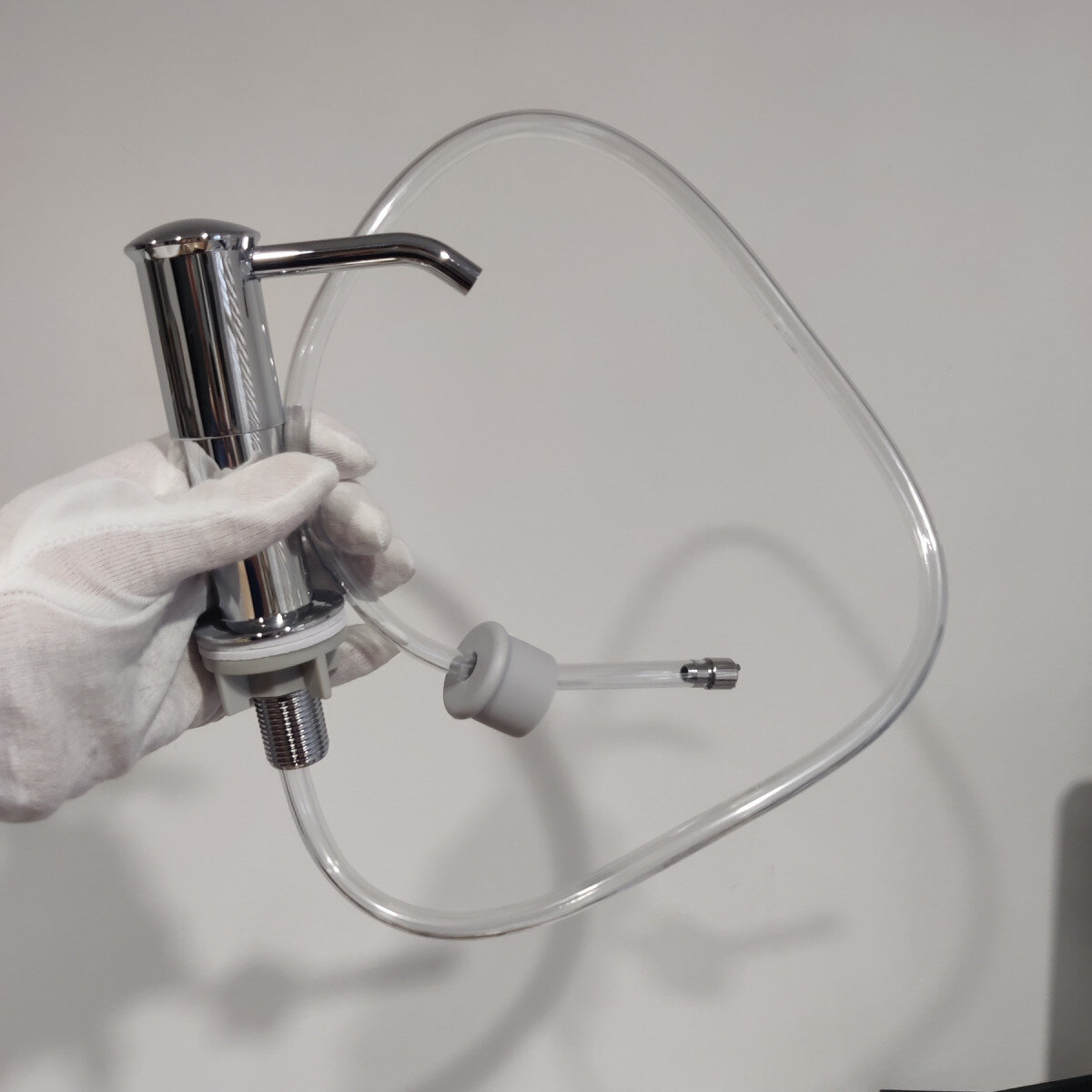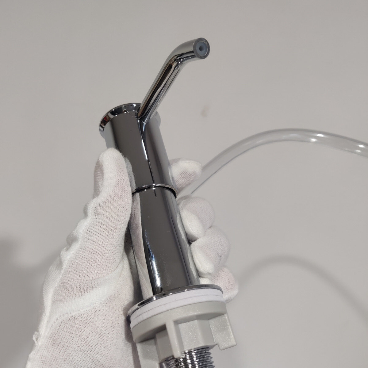 Простий дозатор миючого засобу середньої якості. Матеріал – пластик.