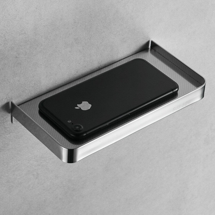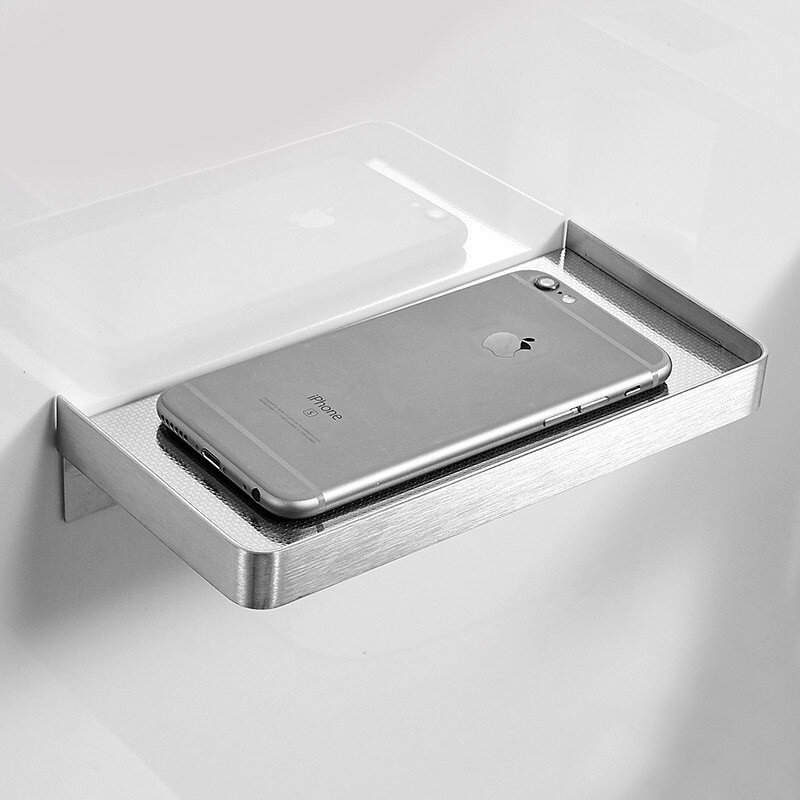 Полиця має сучасний дизайн, що гармонійно поєднується з більшістю дизайнерських рішень при облаштуванні ванної кімнати. Підійде для телефону чи дрібниць.