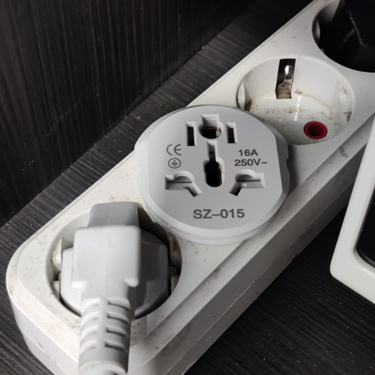 Перехідний адаптер зі стандартів US/UK/AU/CN до стандарту EU. Його особливість у тому, що адаптер дуже маленький і занурюється у підрозетник.