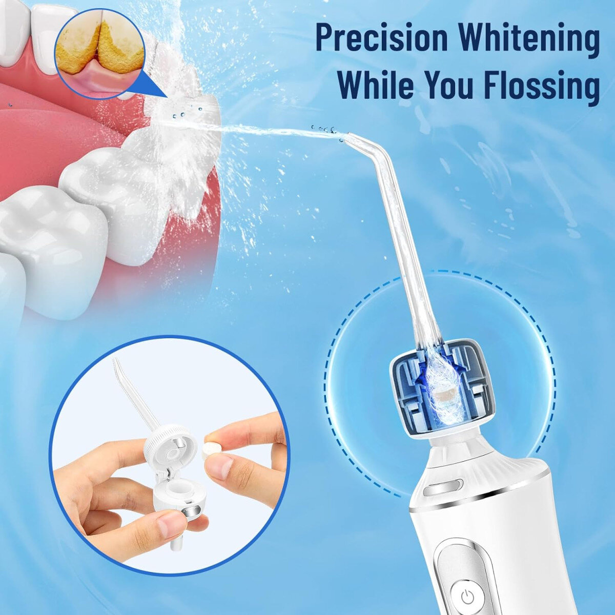 Система відбілювання зобов'язань для іригатора H2OFLOSS. Є адаптером з насадкою для іригатора. Цей адаптер містить спеціальну таблетку для відбілювання зубів.