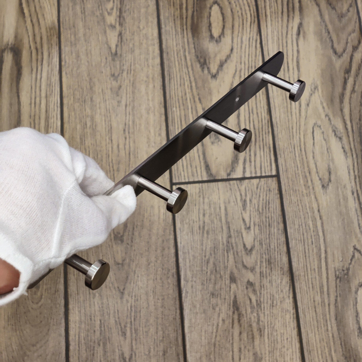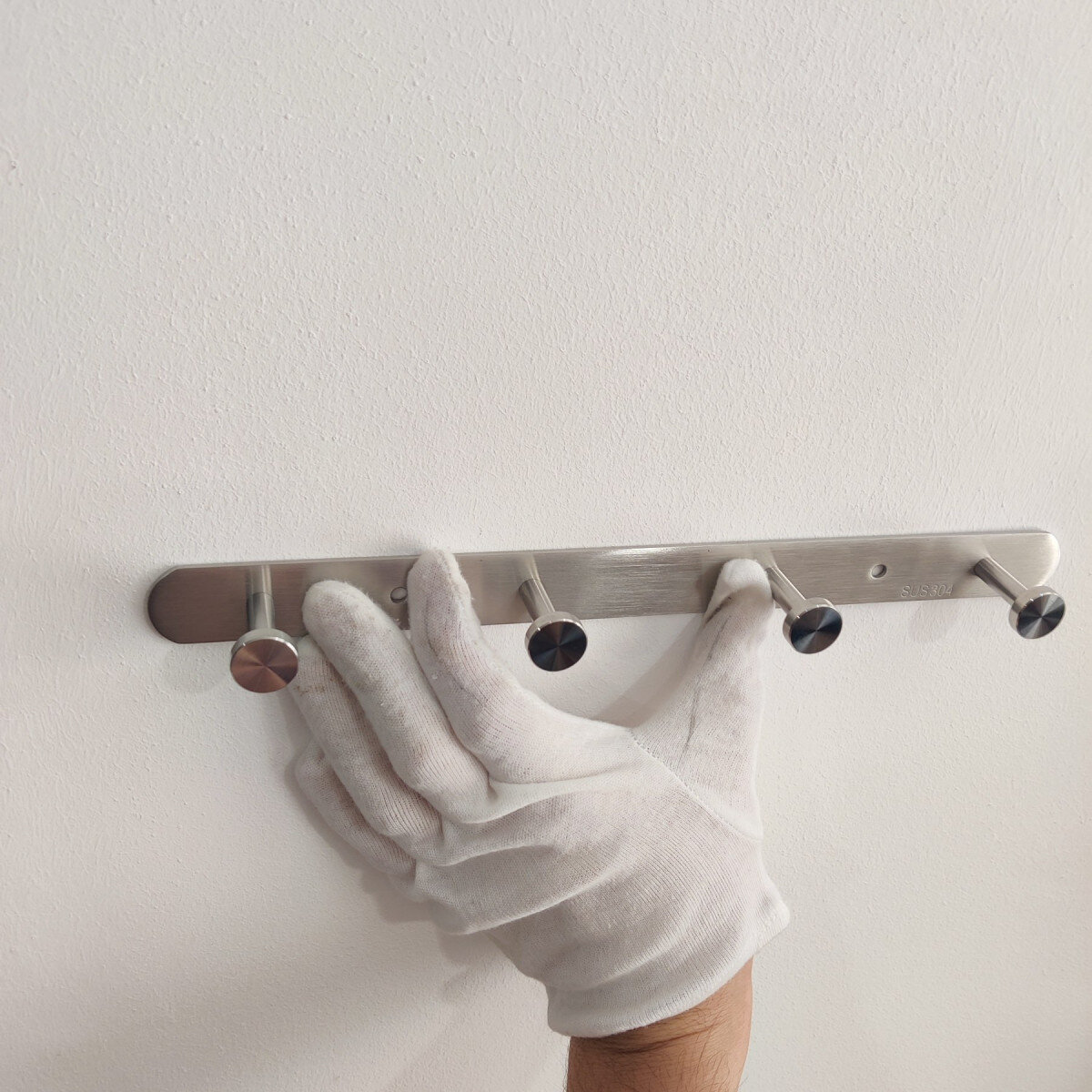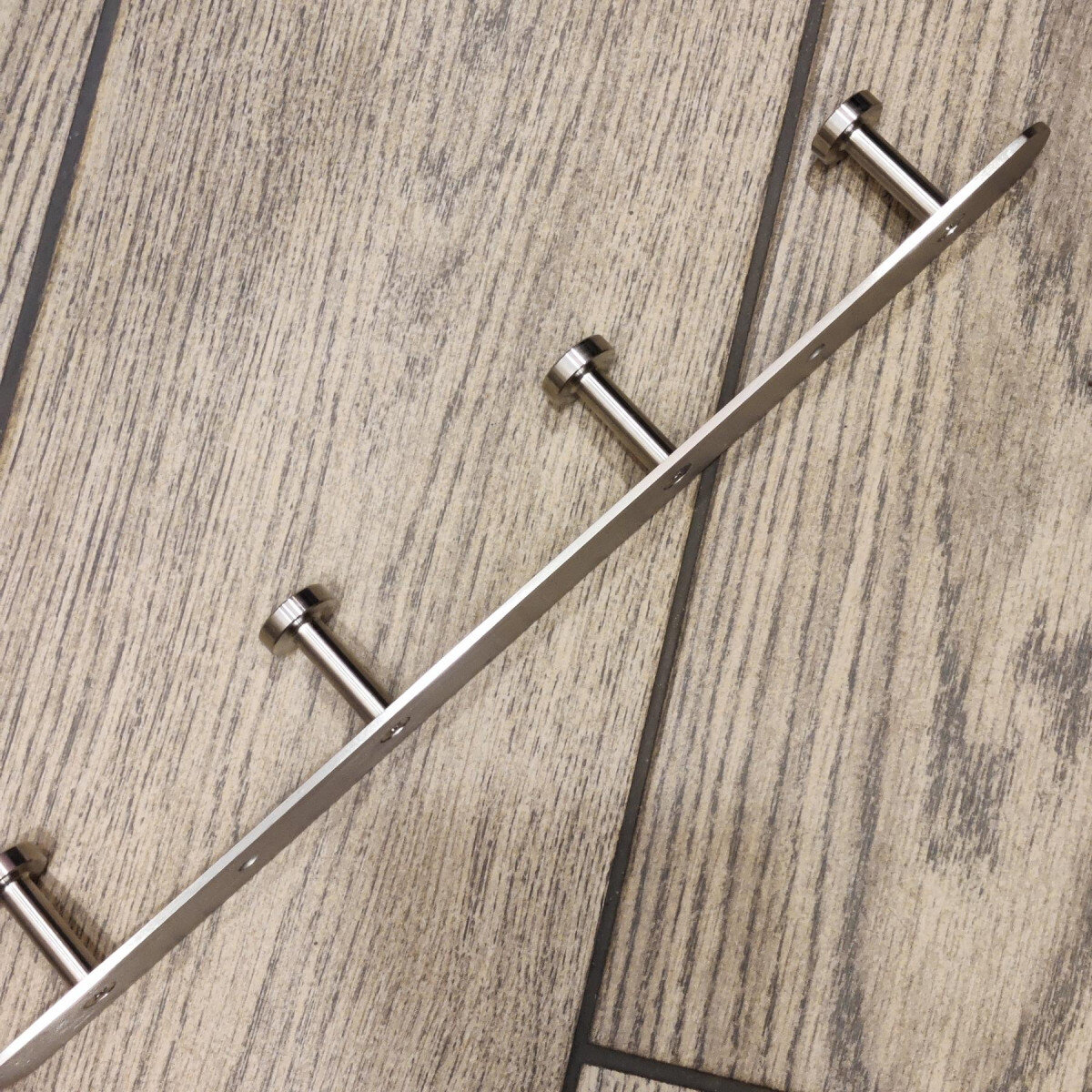 Вішалка із нержавіючої сталі. Виготовлена ​​з товстого матеріалу, не гнеться. Матова поверхня. Кріпиться шурупами.