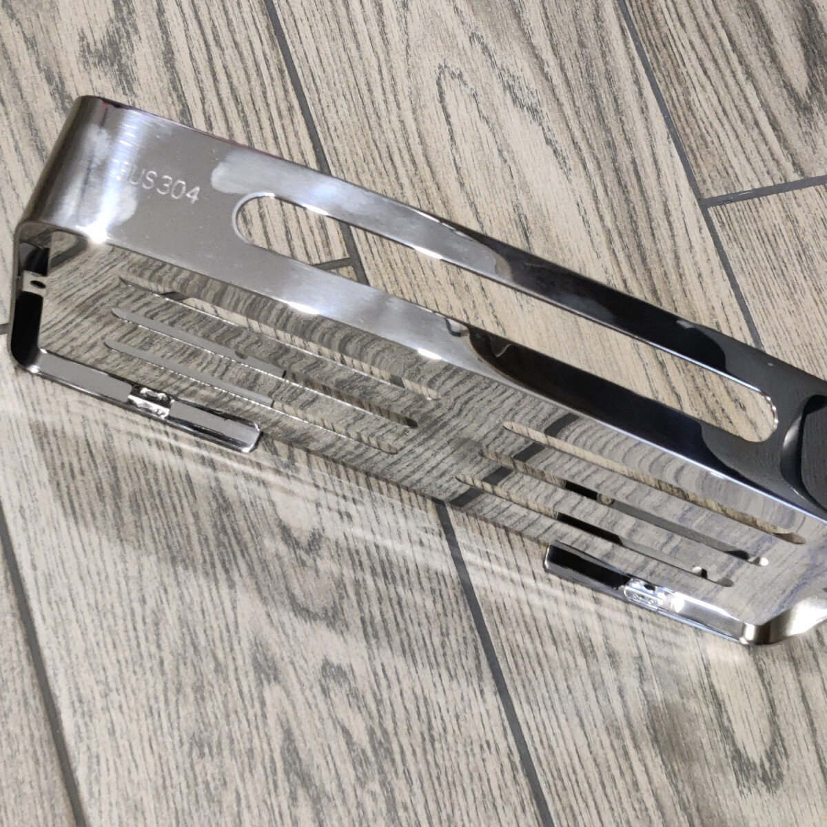 Полиця для ванної виготовлена ​​з нержавіючої сталі марки 304, стійка до дії вологи, не іржавіє. Полиця має сучасний дизайн, що гармонійно поєднується з більшістю дизайнерських рішень при облаштуванні ванної кімнати.
