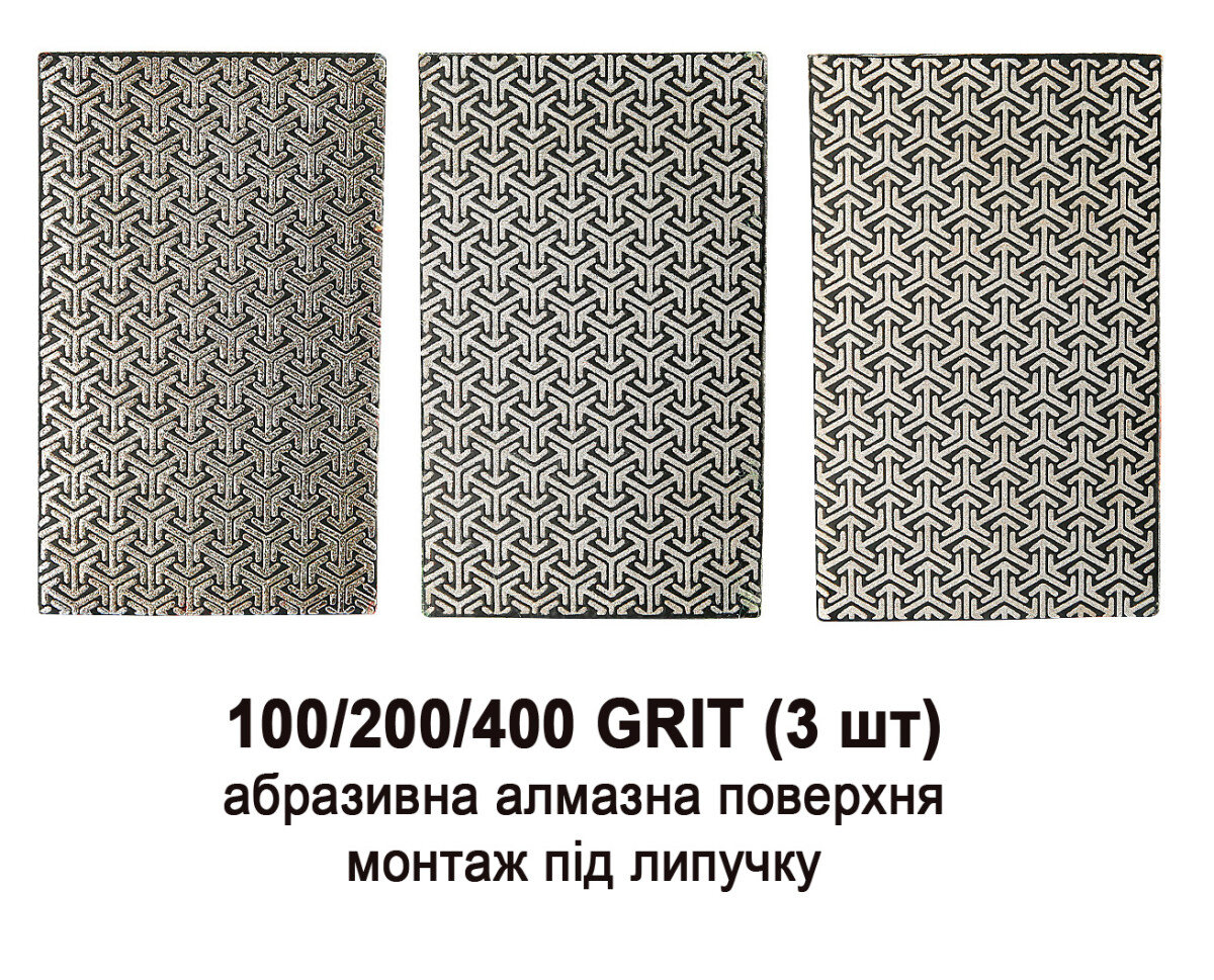Шліфувальні пластини для кріплення на липучку. Розмір – 90x55mm. 100, 200, 400 GRIT. 3 шт. у комплекті.